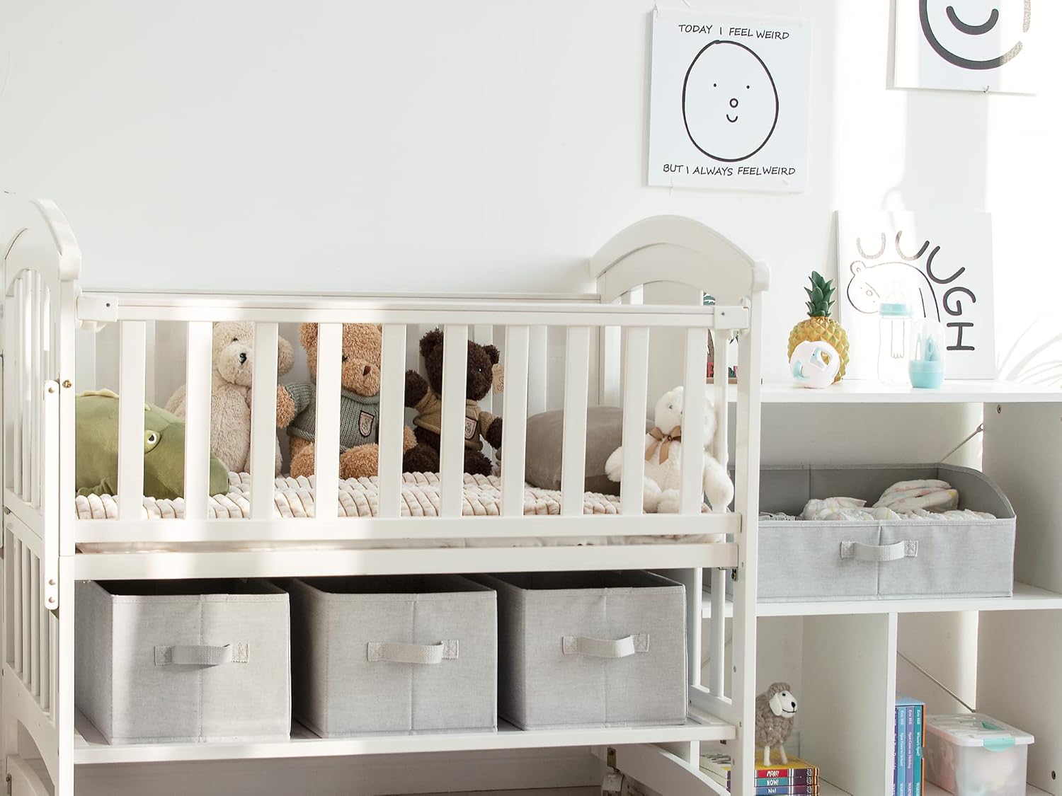 - The storage baskets for shelves are collapsible for compact storage when not in use.