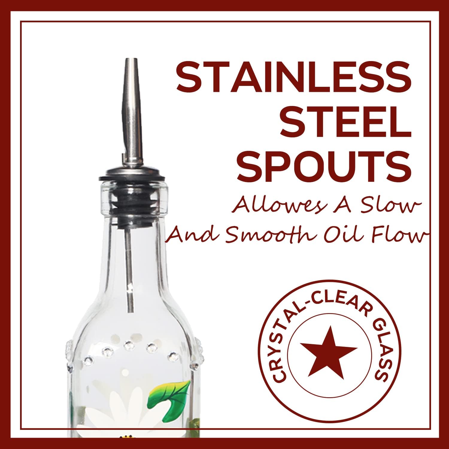 - Premium Lead-Free Glass: Crafted from high-quality lead-free glass, our oil dispenser ensures a pure taste and safe usage of your oils, while the 18/8 stainless steel pour spout provides a smooth, non-drip stream for precise pouring.