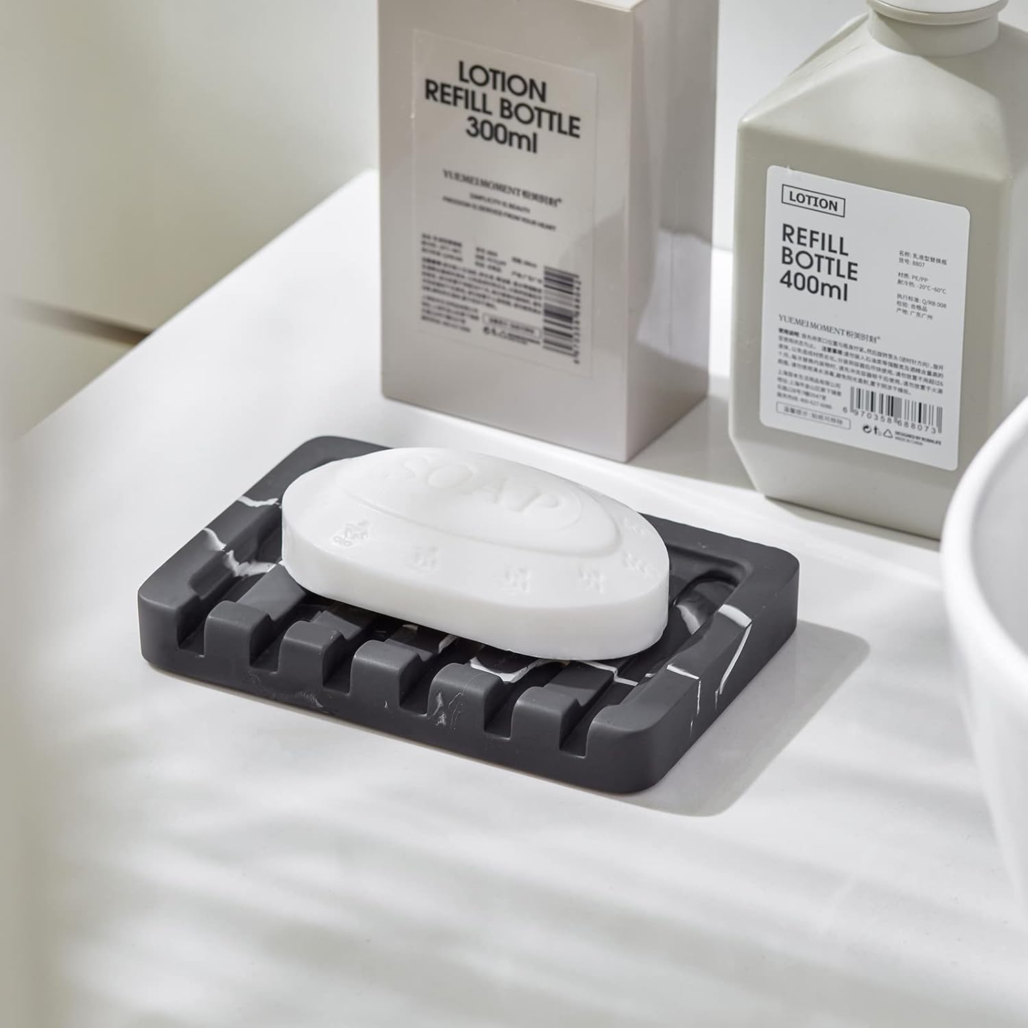 - Marble Pattern Soap Dish: The shower soap holder is black with white streak through it to create a cute marble like finish. Add a nice clean touch to your bathroom and kitchen, and complements your dΓ©cor so well.