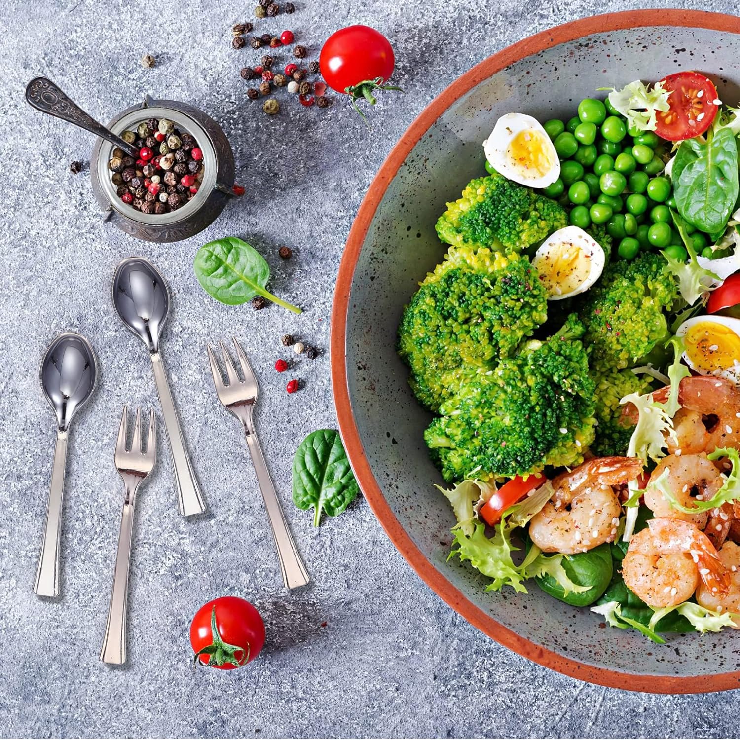 - Stainless Steel Appearance: plastic serving utensils are silver in the surface, which look like stainless steel, distinctive and elegant, will make your party look appealing and sophisticated, and your guest will be impressed
