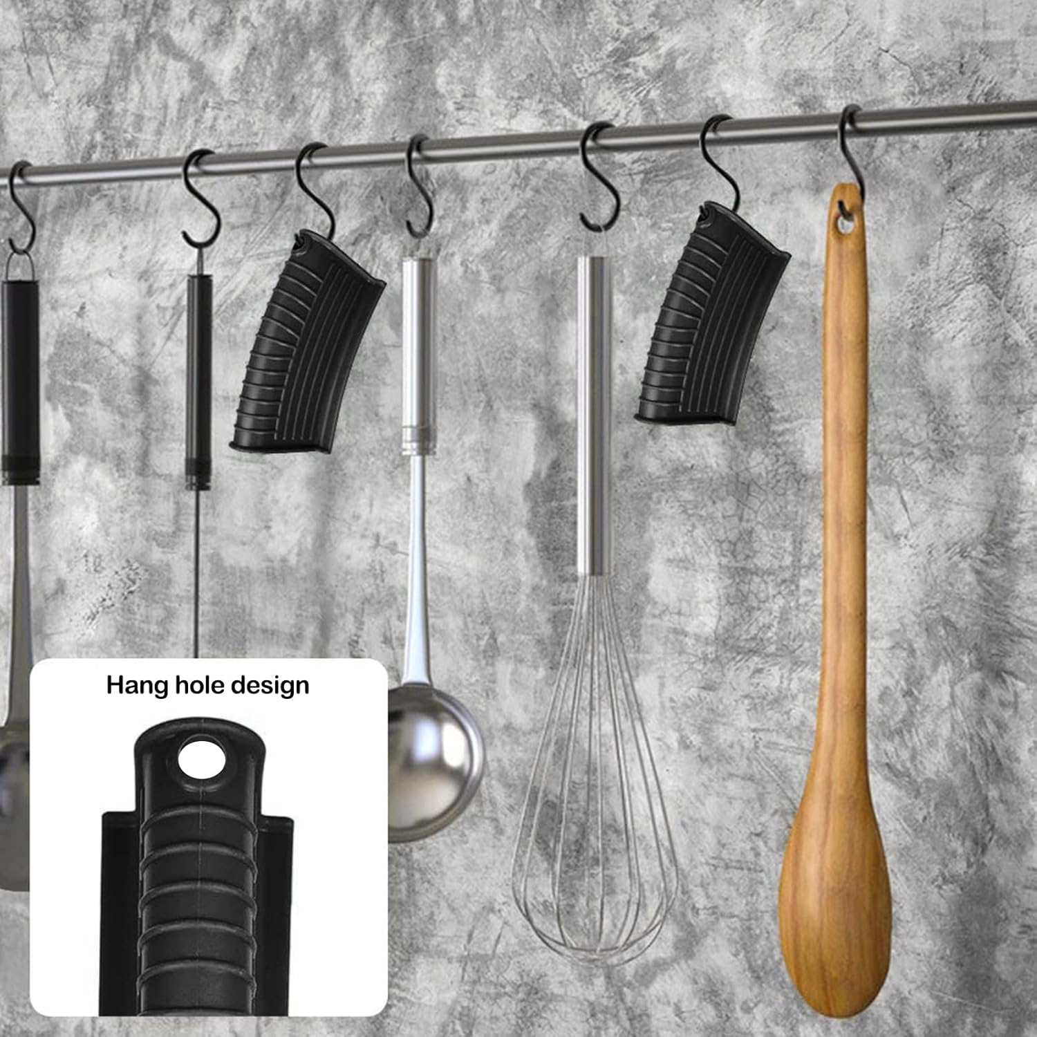 - Easy to clean and store:The anti-scald pot handle cover is easy for you to clean due to its smooth and non-stick surface,the silicone auxiliary bracket with 1 hole can be hung on the hook for convenient storage