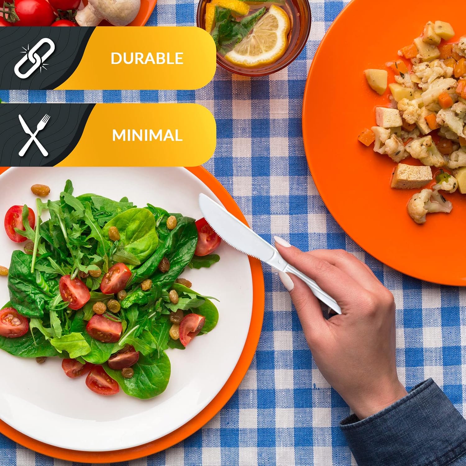 PAMI Heavy Weight Disposable Plastic Knives [200-Pack] - Bulk King Size Deluxe White Plastic Silverware For Parties, Weddings, Catering Food Stands, Takeaway- Heavy-Duty Single-Use Partyware Knives