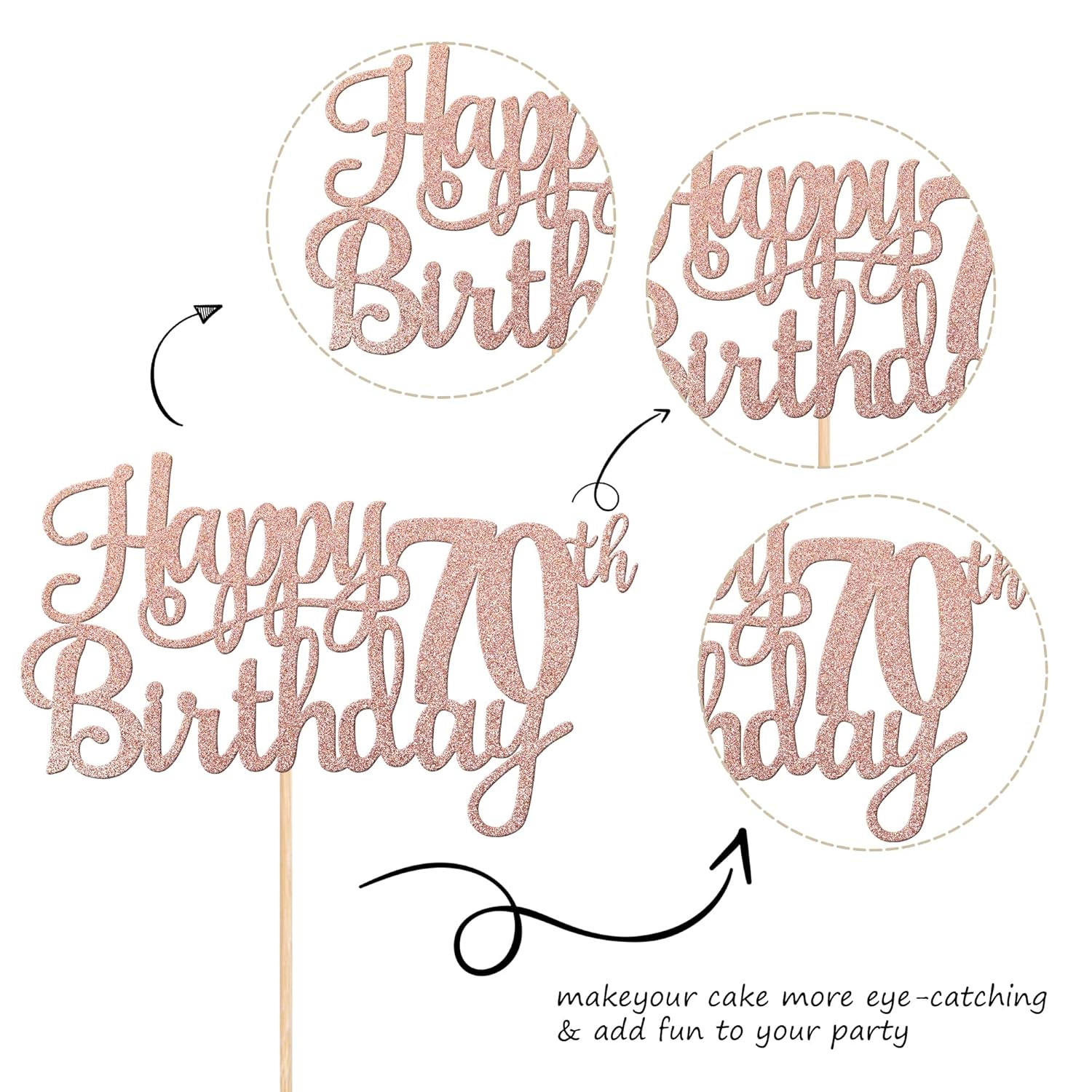 - Wide Usages ! The cake topper is perfect for happy 70th birthday theme party, cheers to 70 years birthday theme party cake decorations, they can make your cake more attractive and bring the fun to your party.You can also apply them for ice cream, fruits, cookies and other desserts.