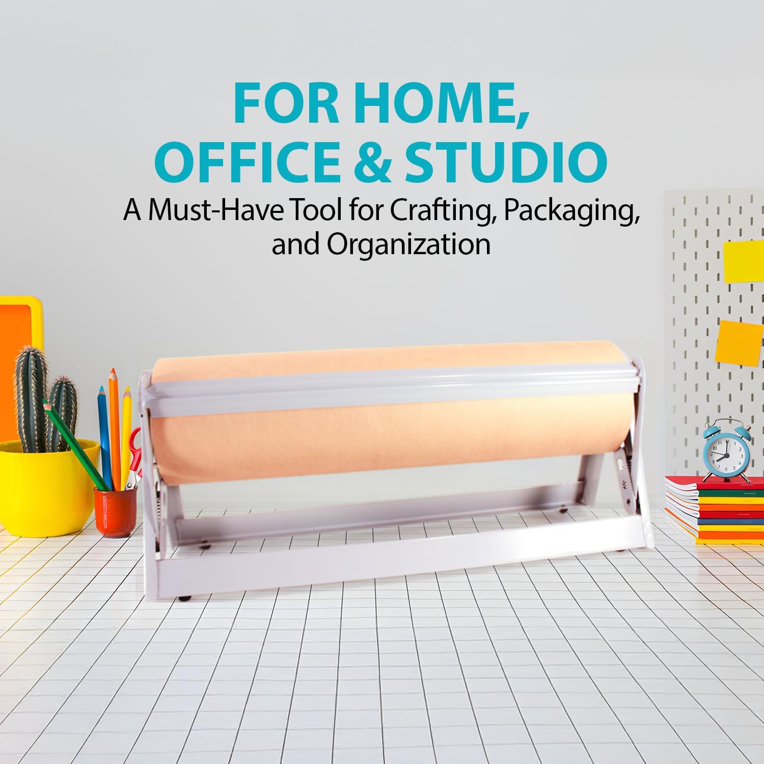 - KEEP PAPER NEAT, ACCESSIBLE & READY TO USE – No more messy rolls or wasted paper with our multi-purpose paper roll cutter. This paper roll dispenser and cutter keeps your paper organized, easy to grab, and always ready when you need it. This kraft paper roll dispenser is a smart, time-saving solution for busy kitchens, classrooms, or workspaces.