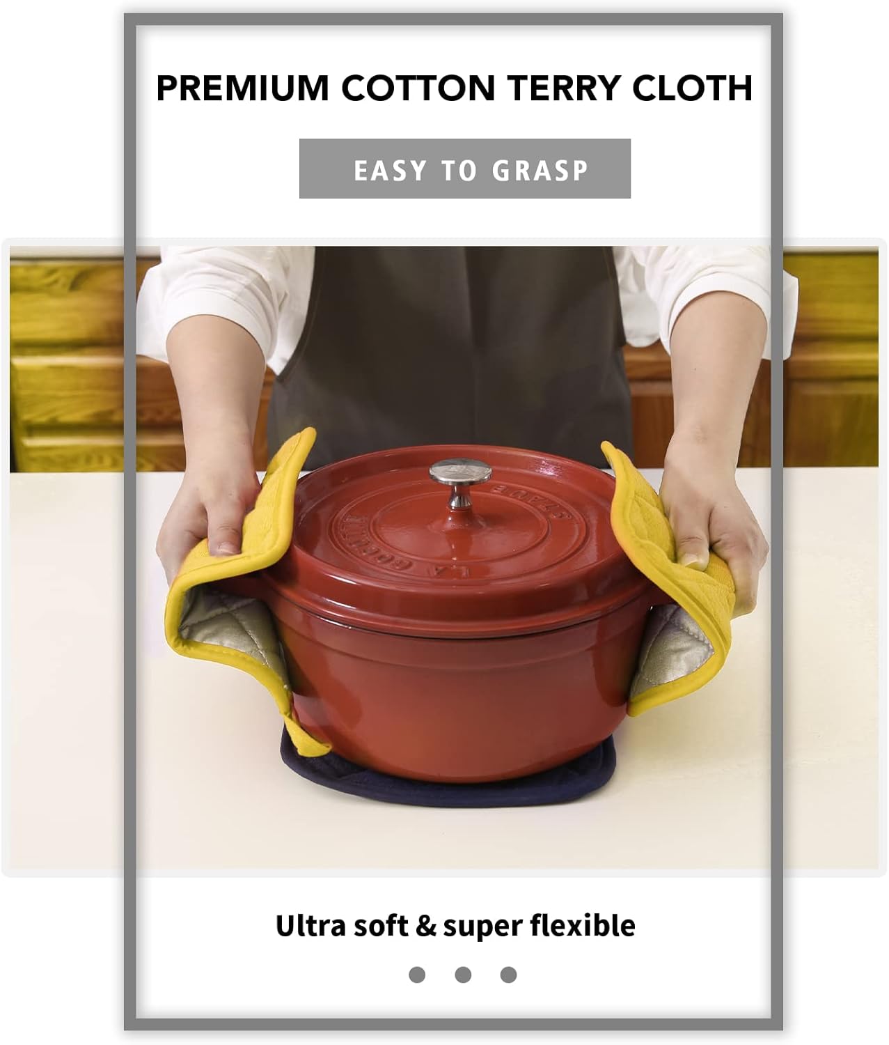 Joyhalo 4 Pack Pot Holders for Kitchen,Cotton Oven Holder with Great Heat Resistance,Non Slip Hot Pads for Kitchen Clearance,Yellow