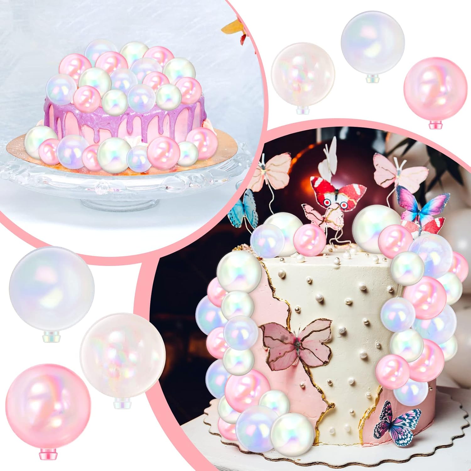 108 Pcs Balls Cake Topper DIY Cupcake Insert Foam Balloons for Cake Baking Wedding Anniversary Birthday Decoration(Pink, Clear, White,1.57'', 1.18'')