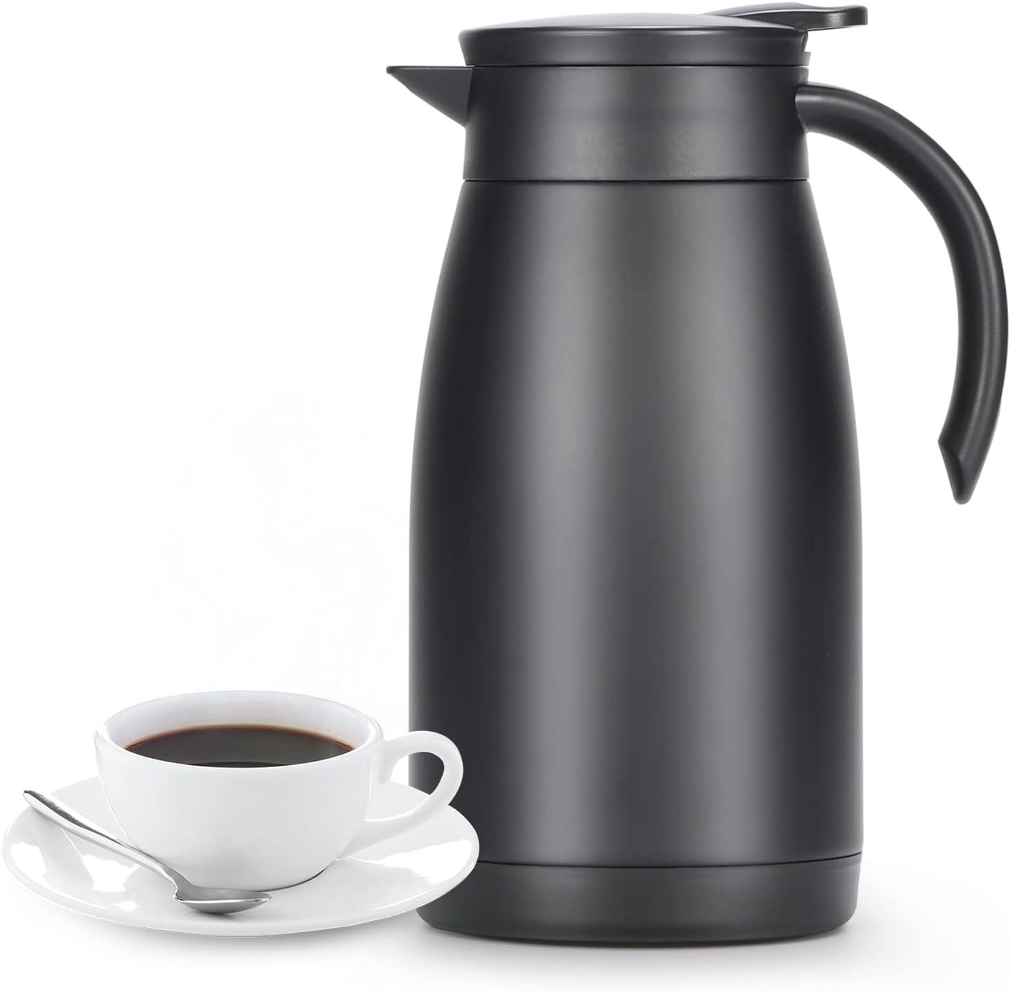 34 Oz Thermal Carafe, Insulated Stainless Steel Coffee Carafes for Keeping Hot Coffee & Tea for 12 hrs and Cold for 24 hrs, 1L/Black