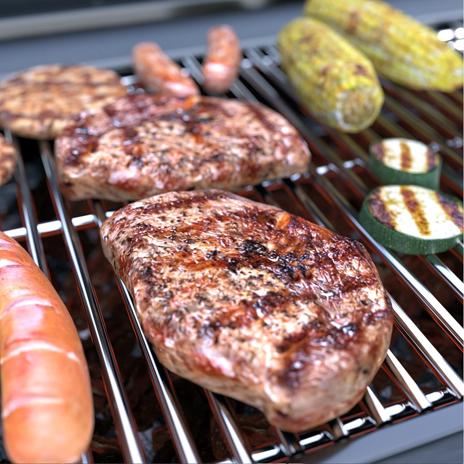 - Easy to Clean: The stainless steel grille has smooth surface. Unlike cast iron grills, only brushes can easily keep the grill net clean and tidy. Try to avoid immersing the grate in water for more than 15 minutes, because this will cause the grate to degrade over time. Always store in a safe and dry place