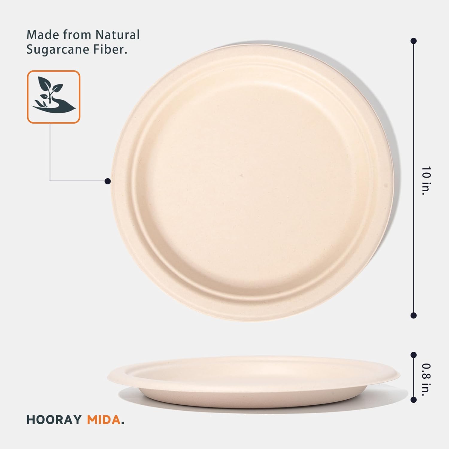 100% Compostable Plates - 125-Count Heavy Duty, Biodegradable Bagasse Plates - Eco Friendly and Sustainable (Natural, 10 inch)