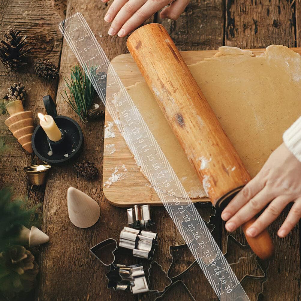 - Place two rulers of the same thickness on either side and place the dough in the middle. Press the dough evenly with a rolling pin