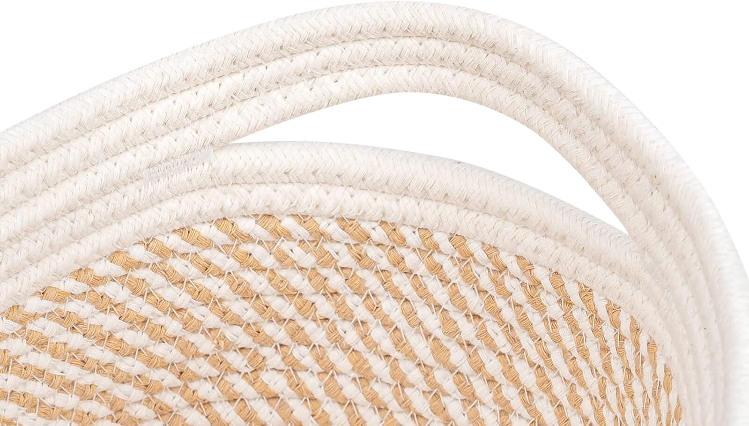 - Classy Natural Cotton Rope Storage Baskets-High quality well made. Very sturdy and a cute modern style. Durable woven rope, Long-lasting, skin-friendly, soft and attractive. You need these adorable baskets to put some supplies in, diaper, jewelry, cosmetics, makeup brushes, tea bags, storing smaller toys, toddler socks, candy
