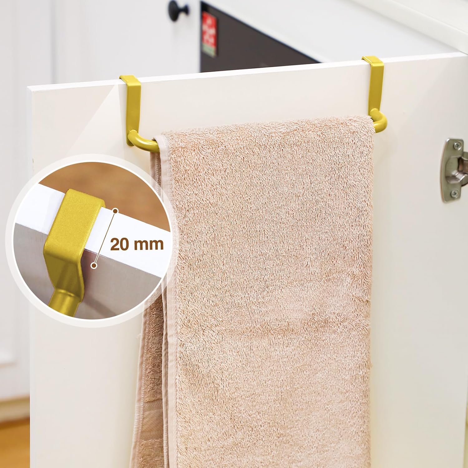 - Products include: you will receive 2 pieces door kitchen towel rack that can be quickly and easily hung over the kitchen door, ideal for small spaces with limited storage space, and provide the convenience you need to dry your towels; Note: suitable for doors up to 2 cm/ 0.8 inch thick