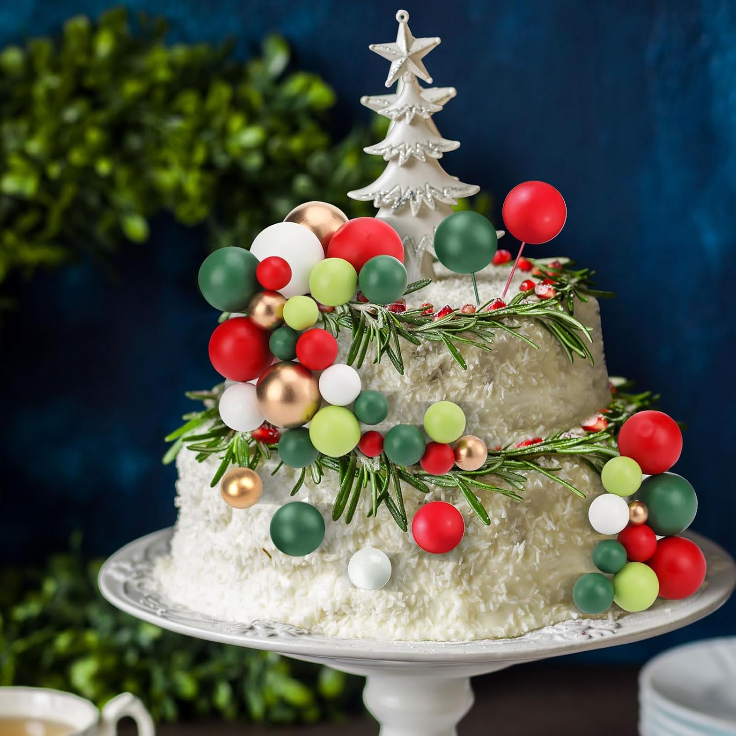 108 Pcs Balls Cake Topper DIY Cupcake Insert Foam Balloons for Cake Baking Wedding Anniversary Birthday Decoration(Various Green, Red, Gold, White,Multi Sizes)