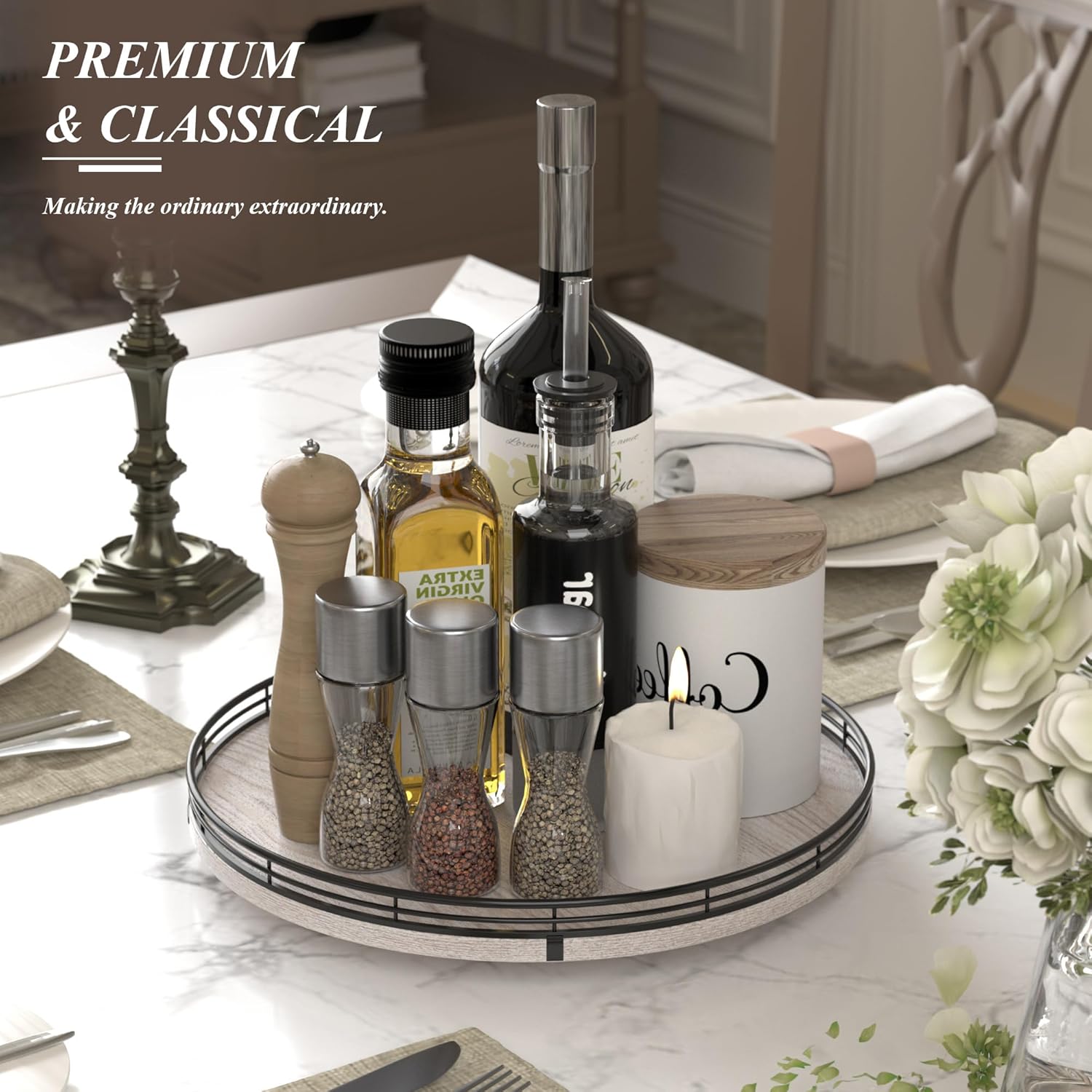 - ππππ πππ πππ ππ: Perfect for a wedding, Birthday, housewarming gift, Mother's Day gift, or centerpiece for any occasions. Tastefully packaged, our turntable organizer makes a thoughtful and practical gift for someone who loves home organization. No assembly was required.