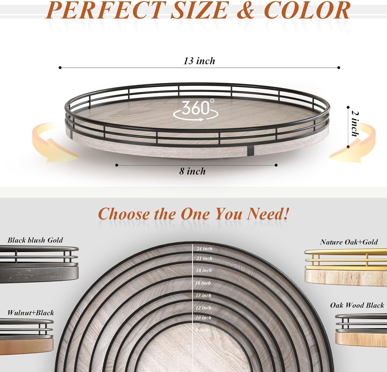 - ππππππ ππππππ:The base is large enough to hold a lot and heavy objects and successfully rotate. It is made of lovely oak wood that is strong with a sturdy metal rack to secure the items on the turntable. The turntable smoothly revolves all around making the items an easy reach. There is also included anti-slip pads on the bottom of the Lazy Susan, for extra surface protection.