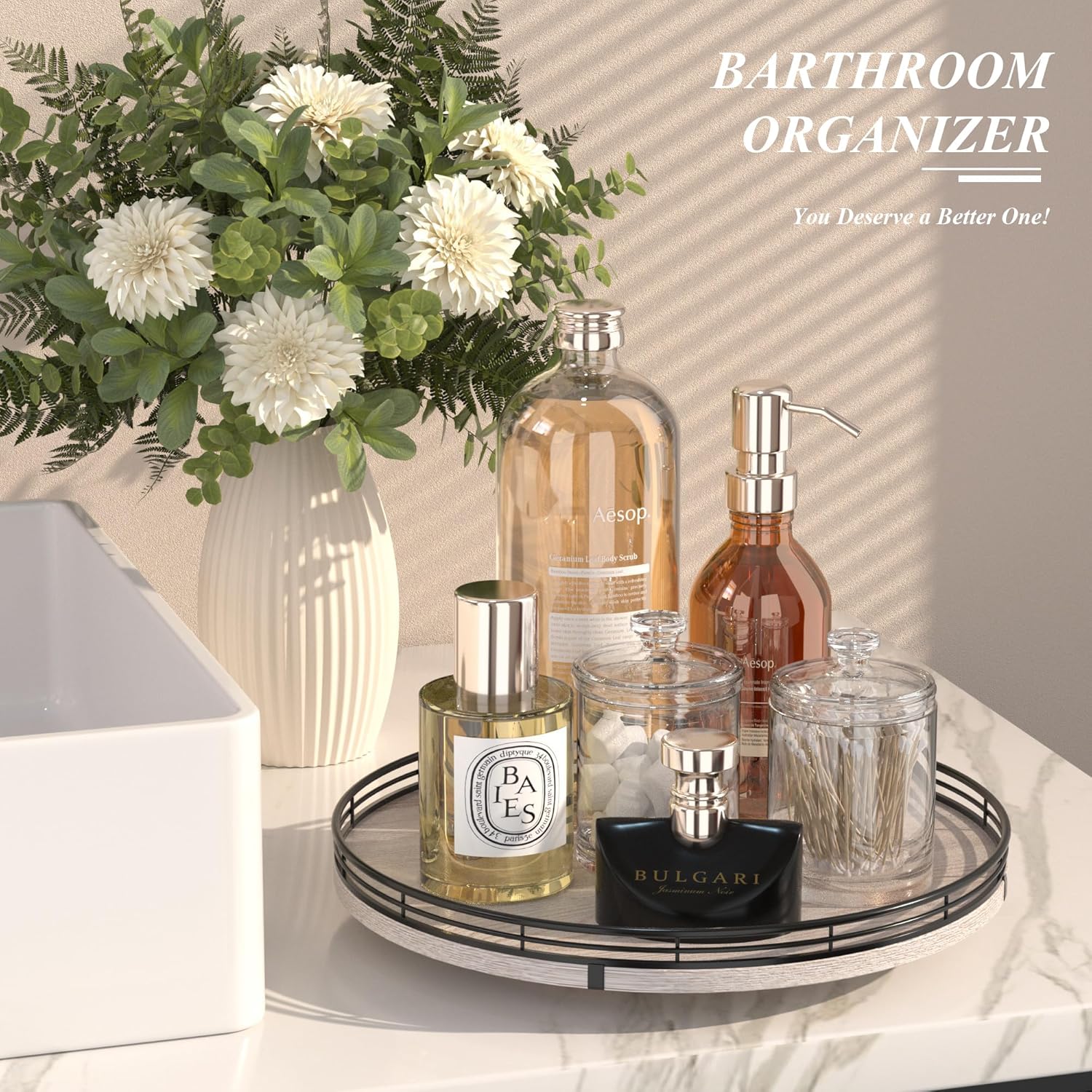 - πππππππππ πππ:This lazy susan is enough to be used nearly anywhere, perfect in the bathroom, bedroom, laundry room, office, etc. Keep your bathroom counter organized with this bathroom tray for toiletries, lotion, washcloth, cotton swabs, soap and scrubber. Using a bathroom vanity tray to keep all your daily skin care and makeup. On the bedroom counter, ideal to organize perfumes. Good idea for the office desk and craft room to organize. Keep your coffee stuff perfect at your coffee