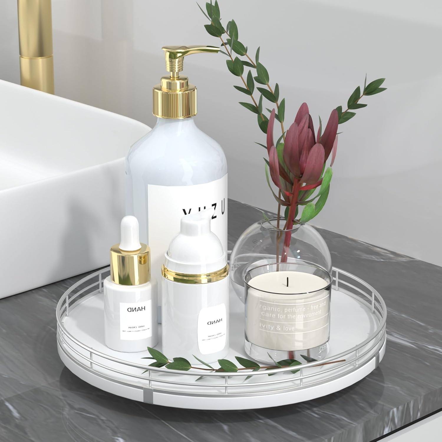 - ๐ ๐๐น๐๐ถ-๐ฃ๐๐ฟ๐ฝ๐ผ๐๐ฒ ๐จ๐๐ฎ๐ด๐ฒ: Perfect for a wide range of occasions and spaces. Whether used as a centerpiece table decorations, a vanity tray in your bathroom, or condiment organizer on your kitchen, this versatile round tray adapts to your needs in any room