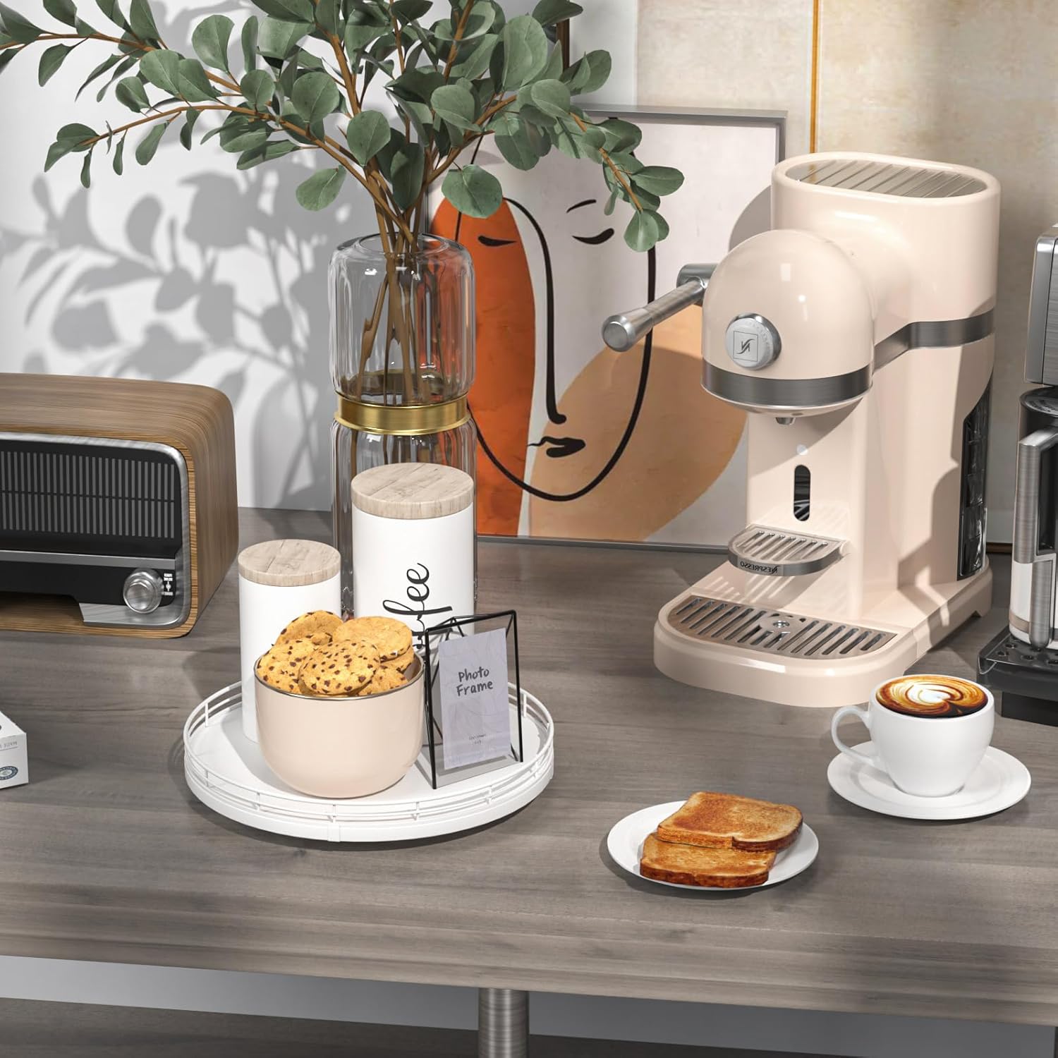 - ๐ง๐ต๐ผ๐๐ด๐ต๐๐ณ๐๐น ๐๐ฒ๐๐ถ๐ด๐ป: The turntable tray features a smooth and silent 360ยฐrotation; Bottom slip-resistant pads for stability and protect your countertop from scratches; Raised edges on each organizer tray to keep items from falling out; Easy to use, no installation required