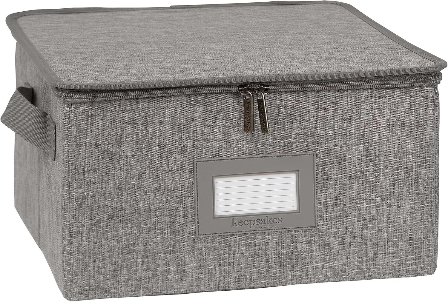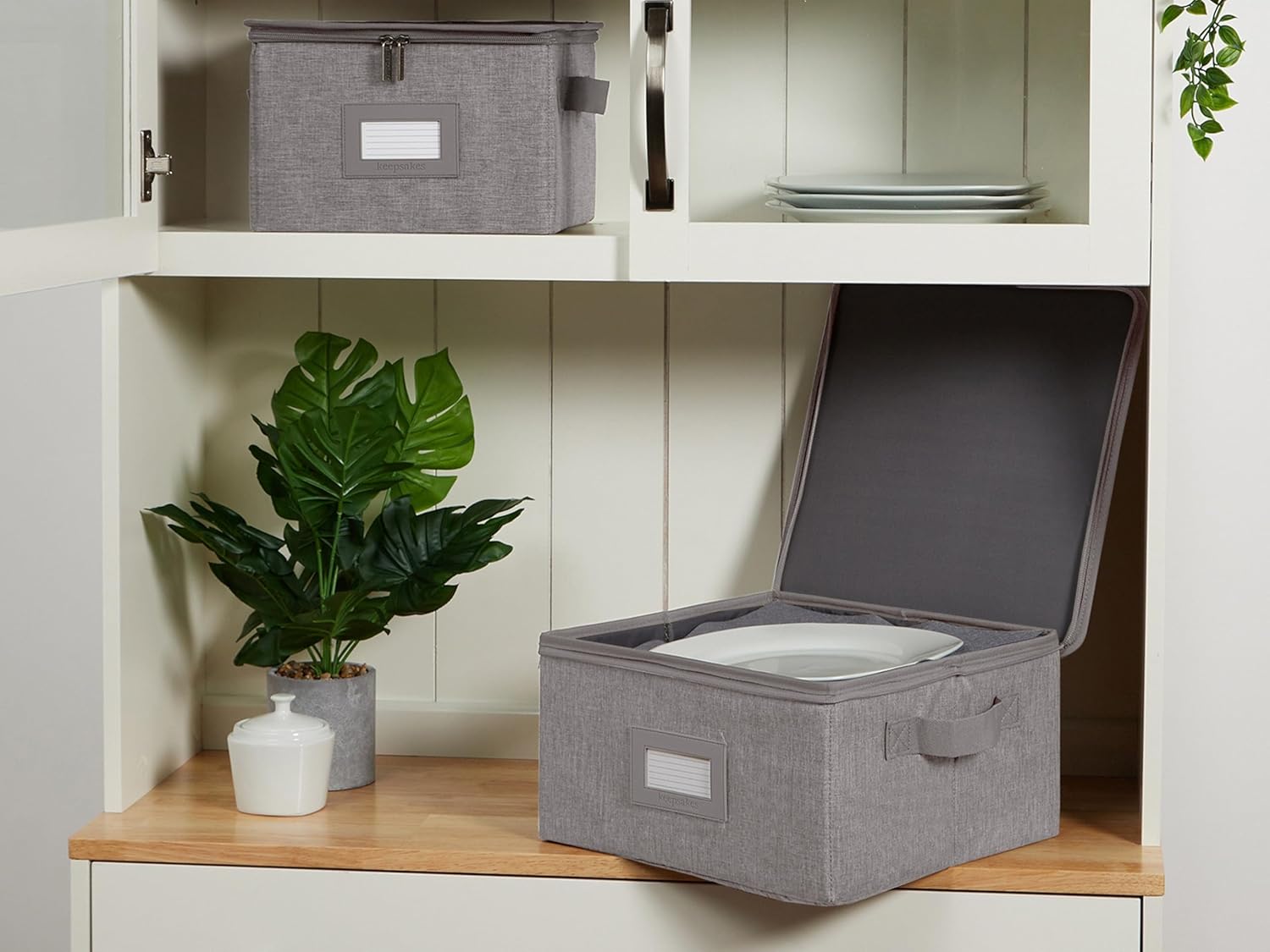 Covermates Keepsakes Dish Storage Box - Stackable, Reinforced Handles, China Storage, Grey Heather
