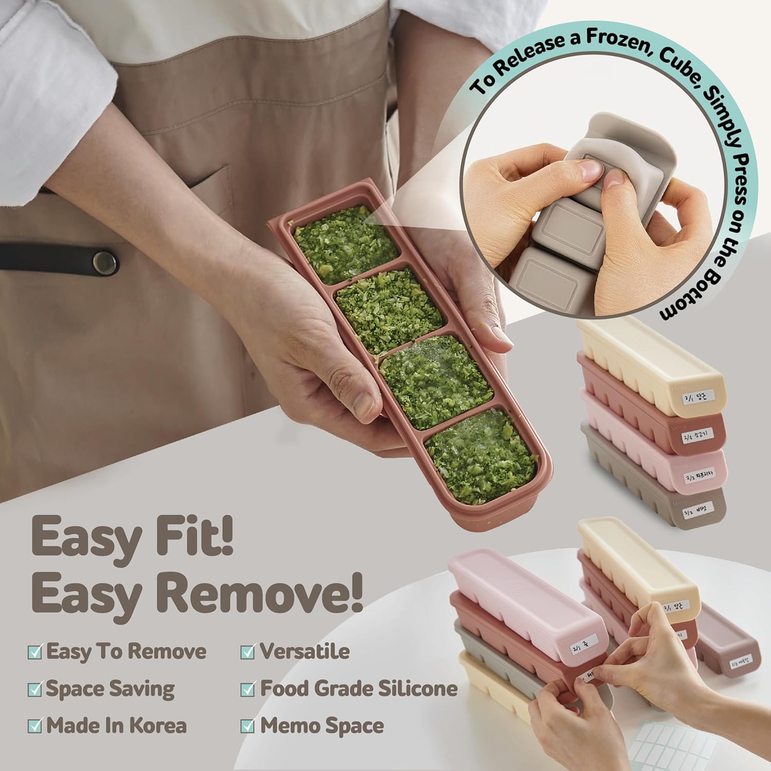 - ā Slim and Compact Design: These silicone freezer containers are available in 4, 6 or 12 compartments, featuring a stackable, ultra-slim and ergonomic design for easy storage. The ultra-wide area which receives cold air ensures a faster freezing process of the contents!