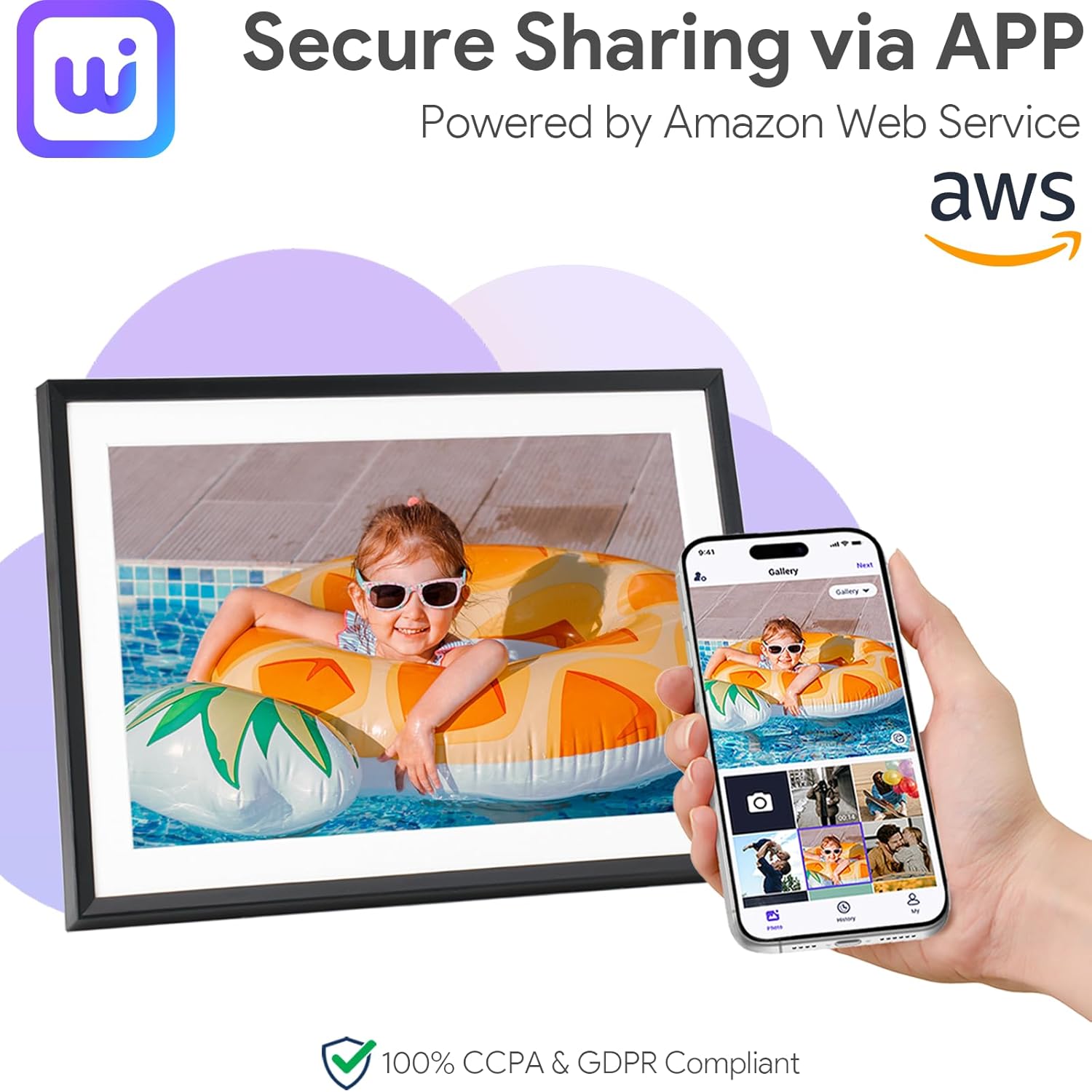 10.1'' Digital Picture Frame with 32GB Storage, Digital Photo Frame with 1280x800 IPS Touch Screen, Share Photos/Videos and Send Best Wishes via Free App