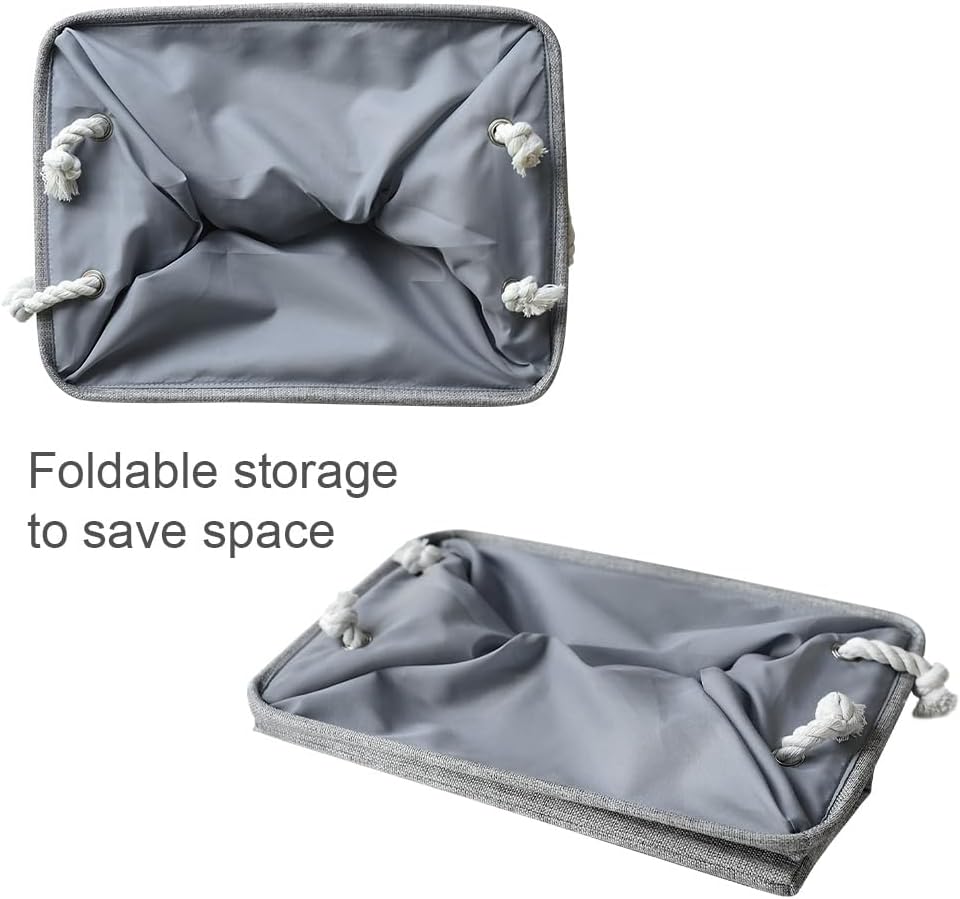 - Made of linen and thicken environmental EVA for reliable performance. Dimensions (each): 17 (L) x 15 (W) x 12 (H) inches.This collapsible basket set provides attractive, lightweight storage. Saves space when not in use and collapses flat for easy storage. It helps keep a room looking neat and tidy. The neutral color combination fits most dΓ©cor while the two side carry handles make it easy to carry