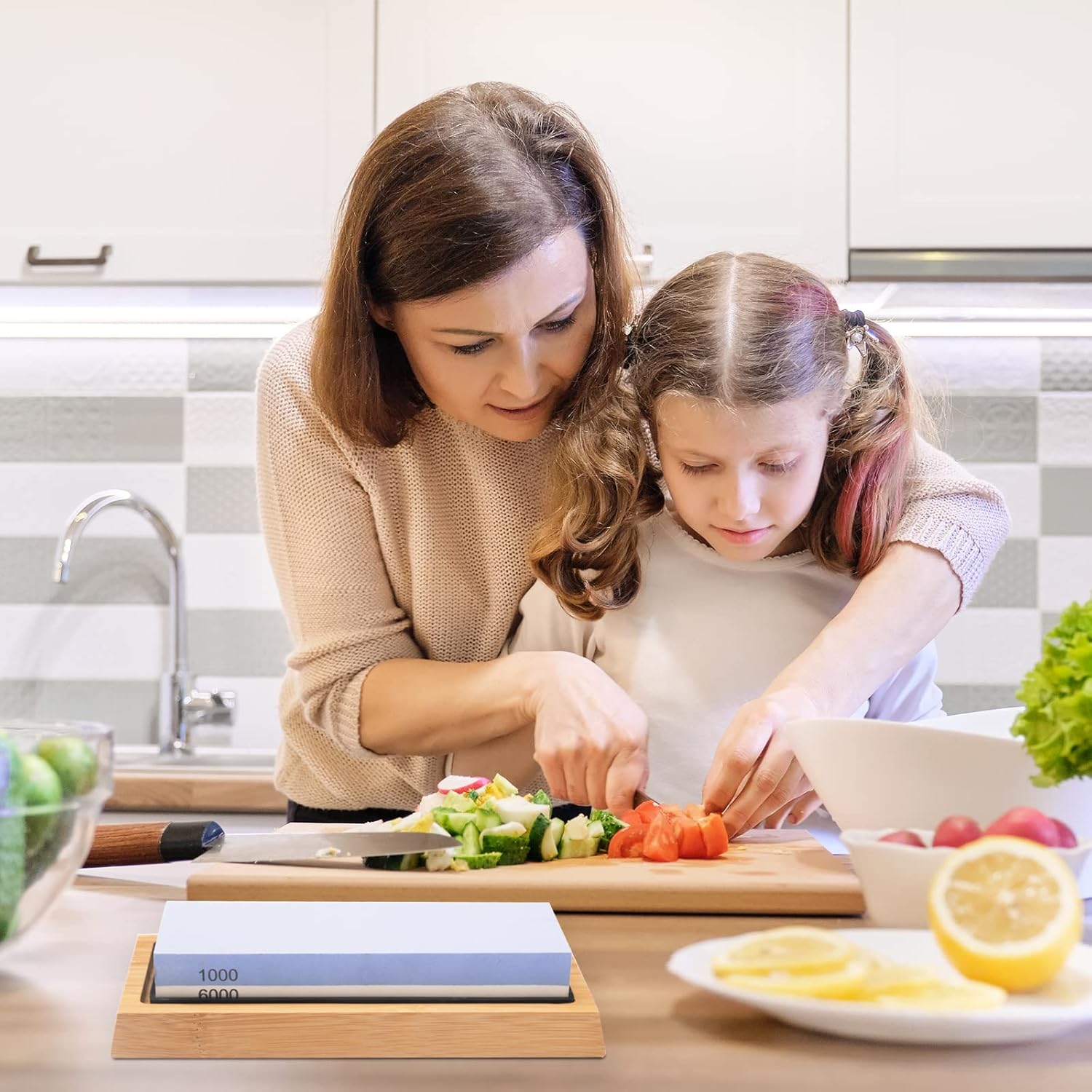 - Safety First: Donβt worry about that itβs so dangerous to sharpen knives or cut your fingers! A non-slip bamboo base and a silicone holder are offered for you to keep the knife stone in place effectively when honing. Another angle guide comes with that helps you maintain the correct angle while sharpening the blade
