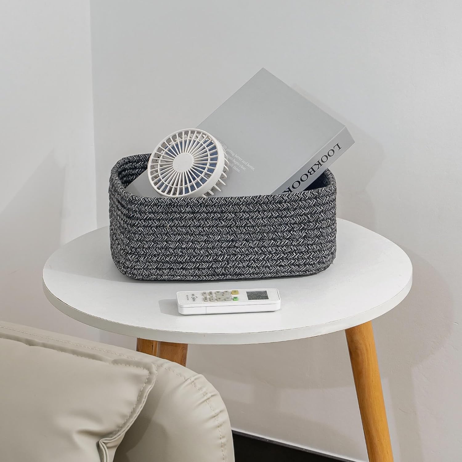- Classy Natural Cotton Rope Storage Baskets-High quality well made. Very sturdy and a cute modern style. Durable woven rope, Long-lasting, skin-friendly, soft and attractive. You need these adorable baskets to put some supplies in, diaper, jewelry, cosmetics, makeup brushes, tea bags, storing smaller toys, toddler socks, candy