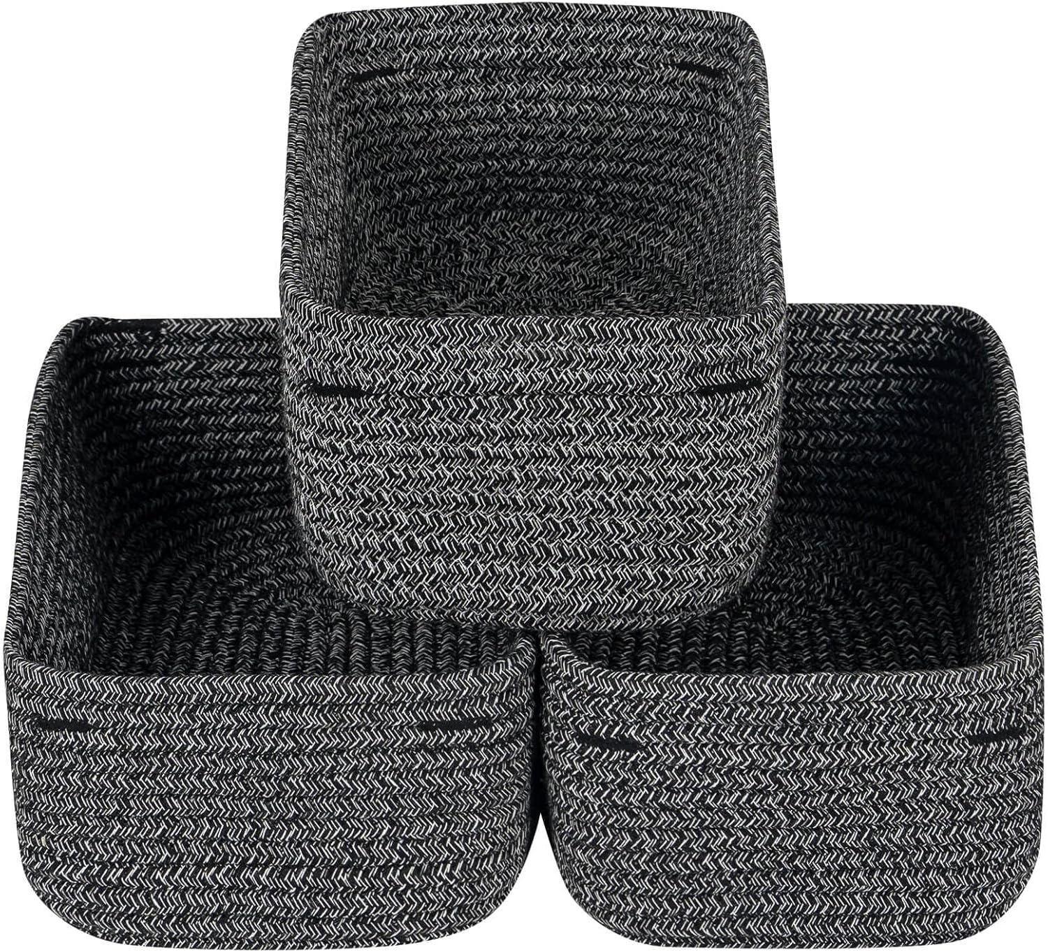 CubesLand Mixed Black Baskets Bins for Organizing,Small Woven Storage Baskets for Shelves,Cute Closet Cube Bins Set 3,Baby Nursery Cube Organizer Toys Basket Bin,Home Decor Organization Bins