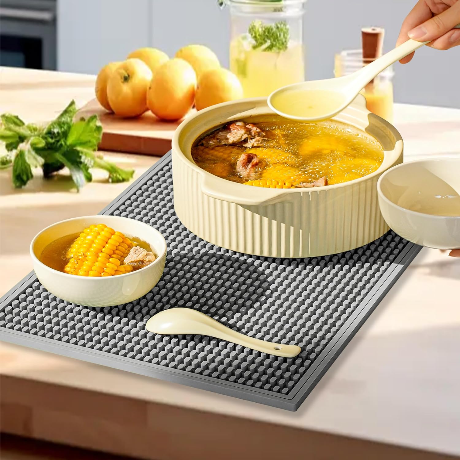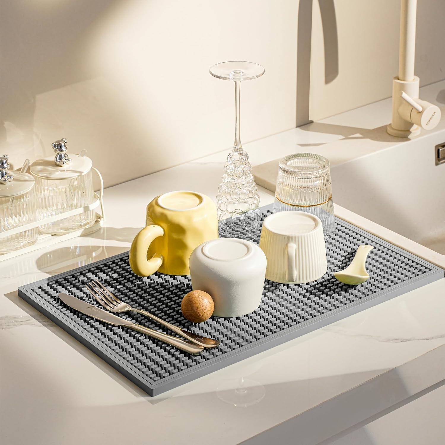 - HIGH QUALITY MATERIAL: Our grey bar mat is made from the best materials, which have been carefully chosen to make sure it is very strong and will last a long time. Whether it's in a busy bar or a cosy home coffee corner, this mat is built to last.