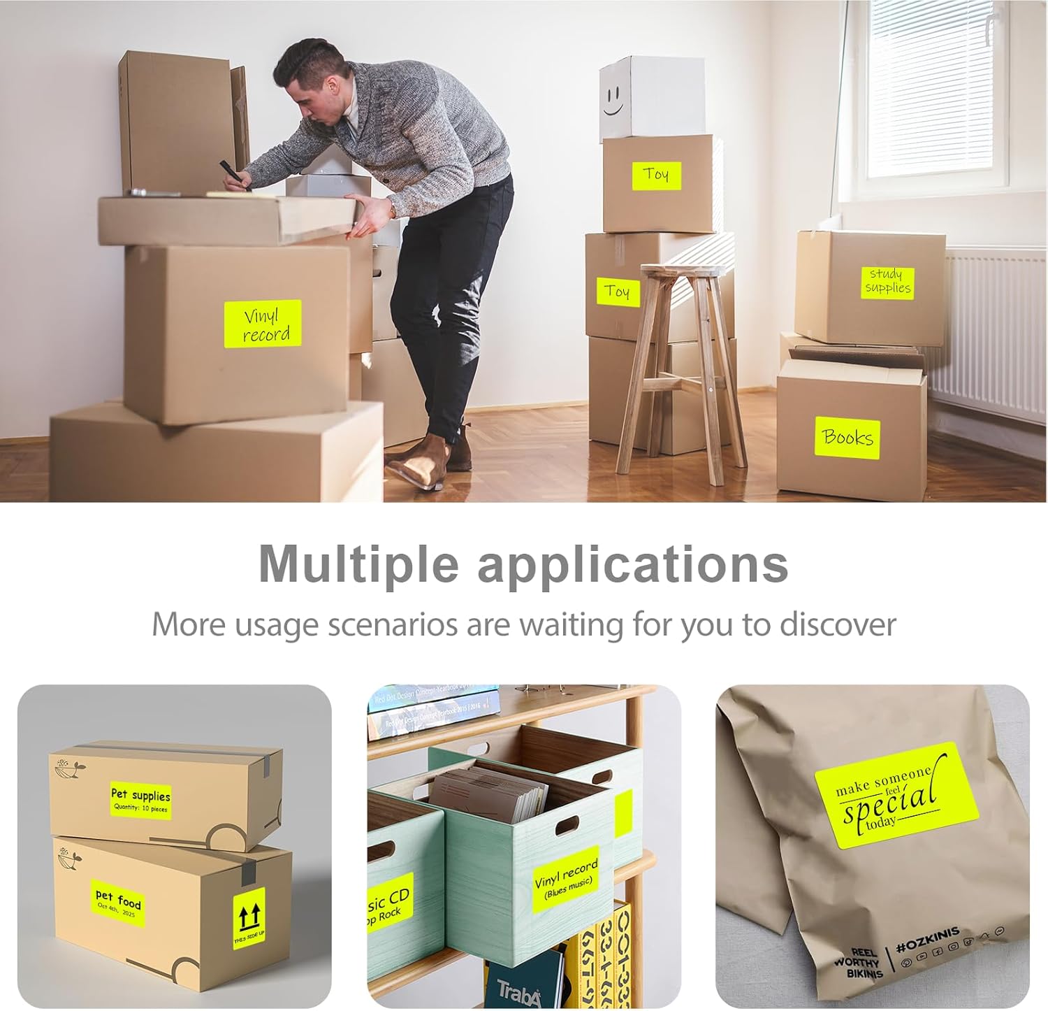 - Writable and Printable: Blank surface lets you write your own message in pen, pencil, or marker. You can also use it for printers. Before using the label, please adjust the printer to ensure that the template size is the same as the label (3 x 5 inches)