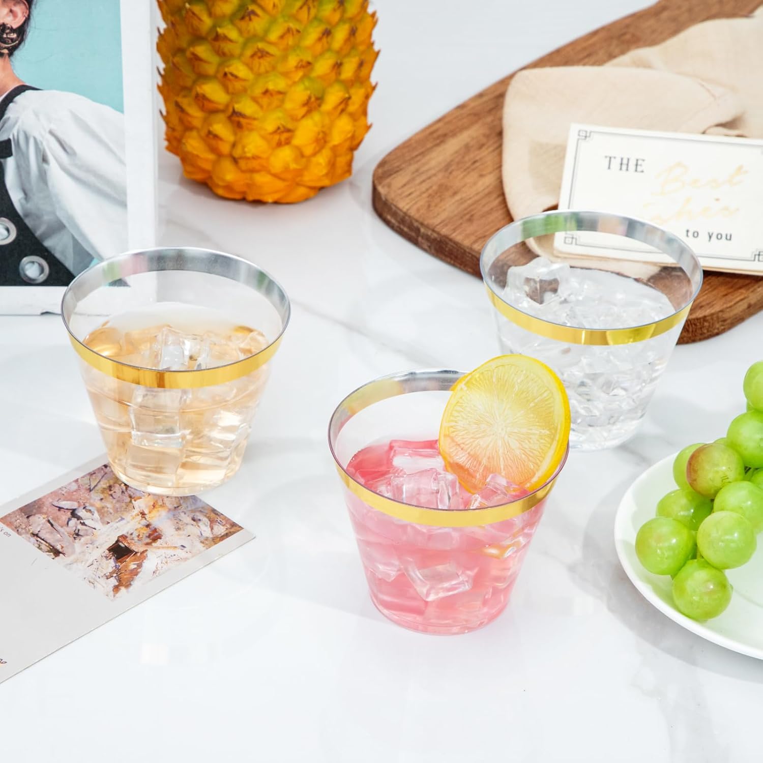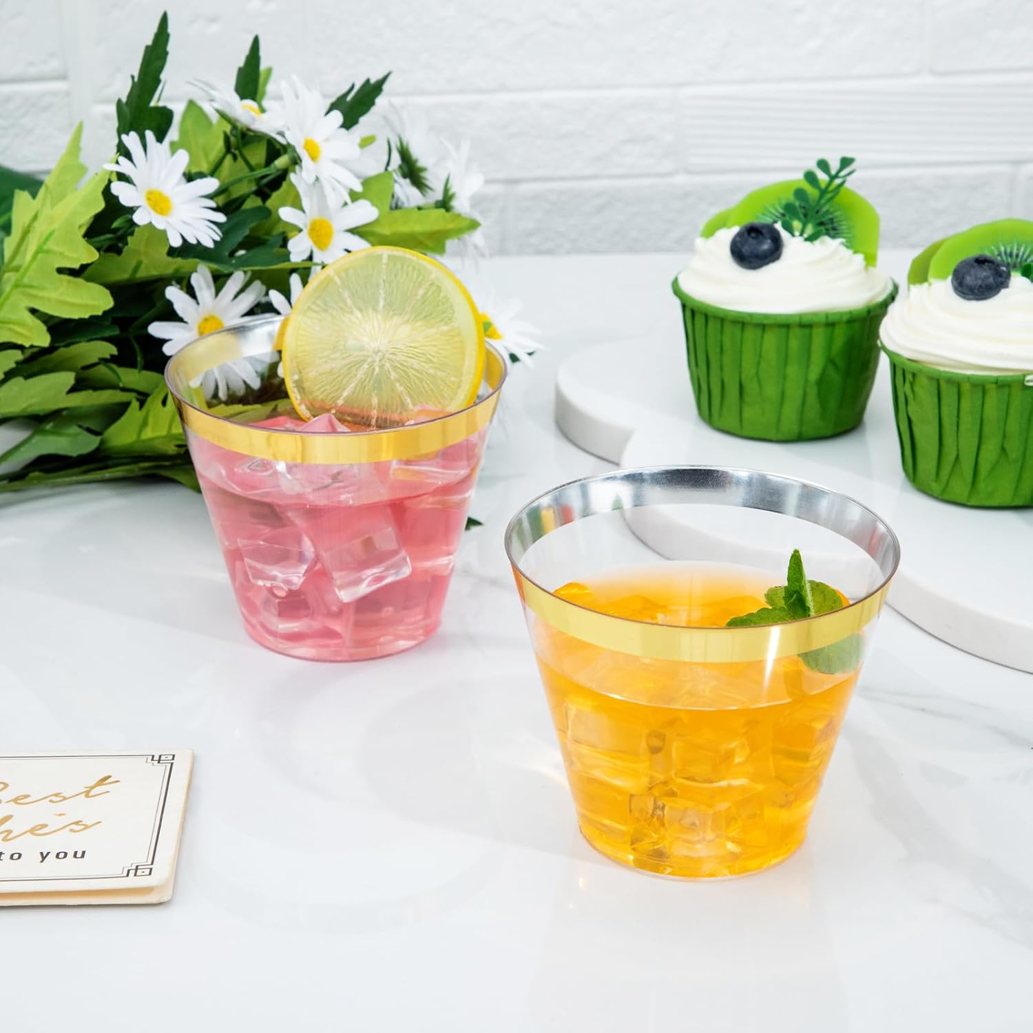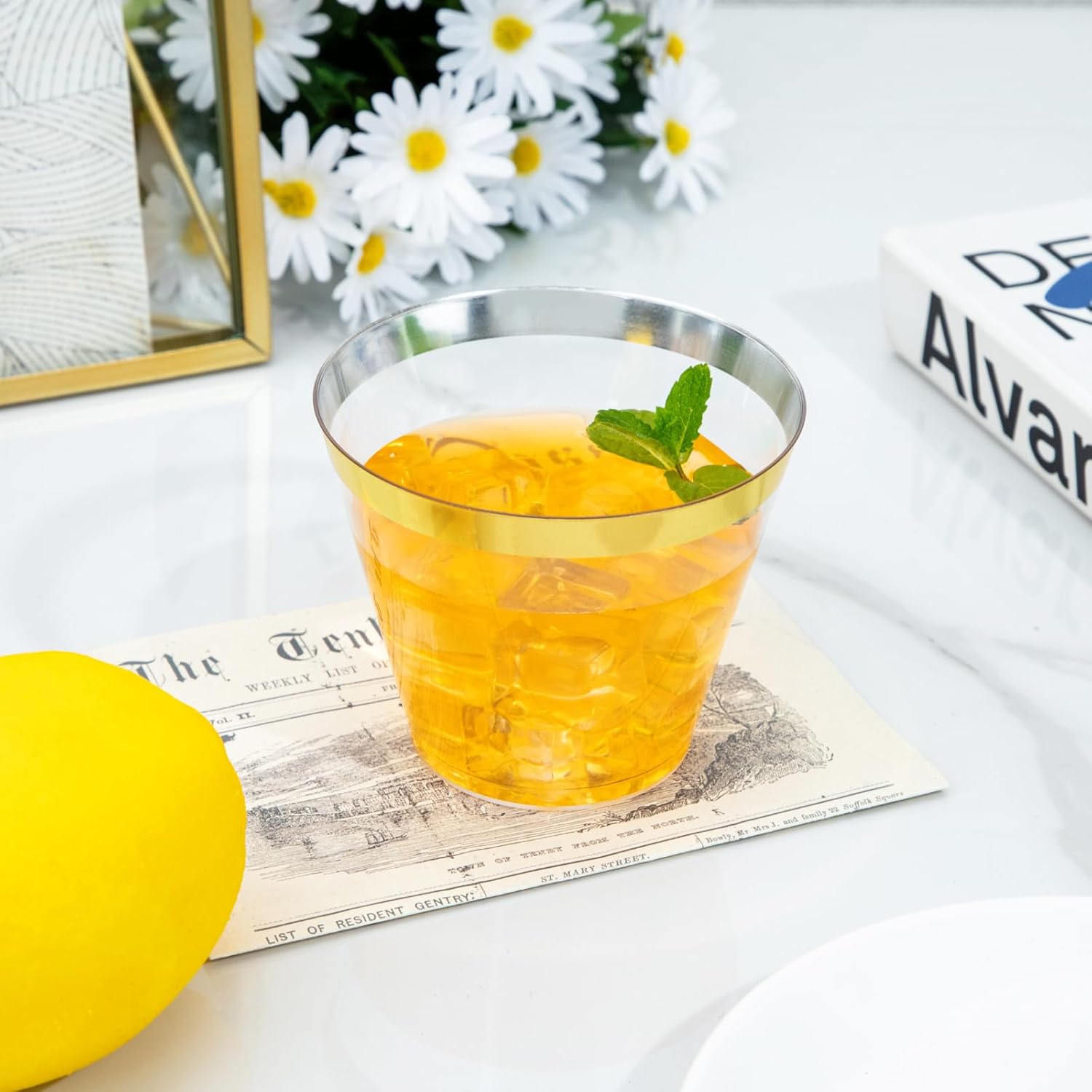 - Great For Any Occasion: Our gold rim plastic cups have a 9 oz capacity and are suitable for most occasions.For example:weddings, birthdays, Thanksgiving, Christmas, family reunions and other events.