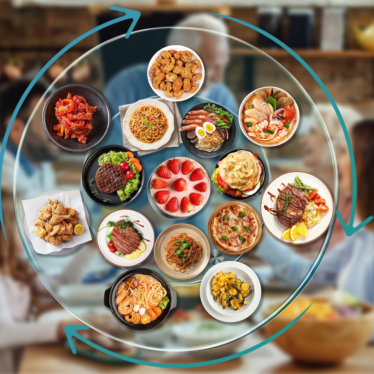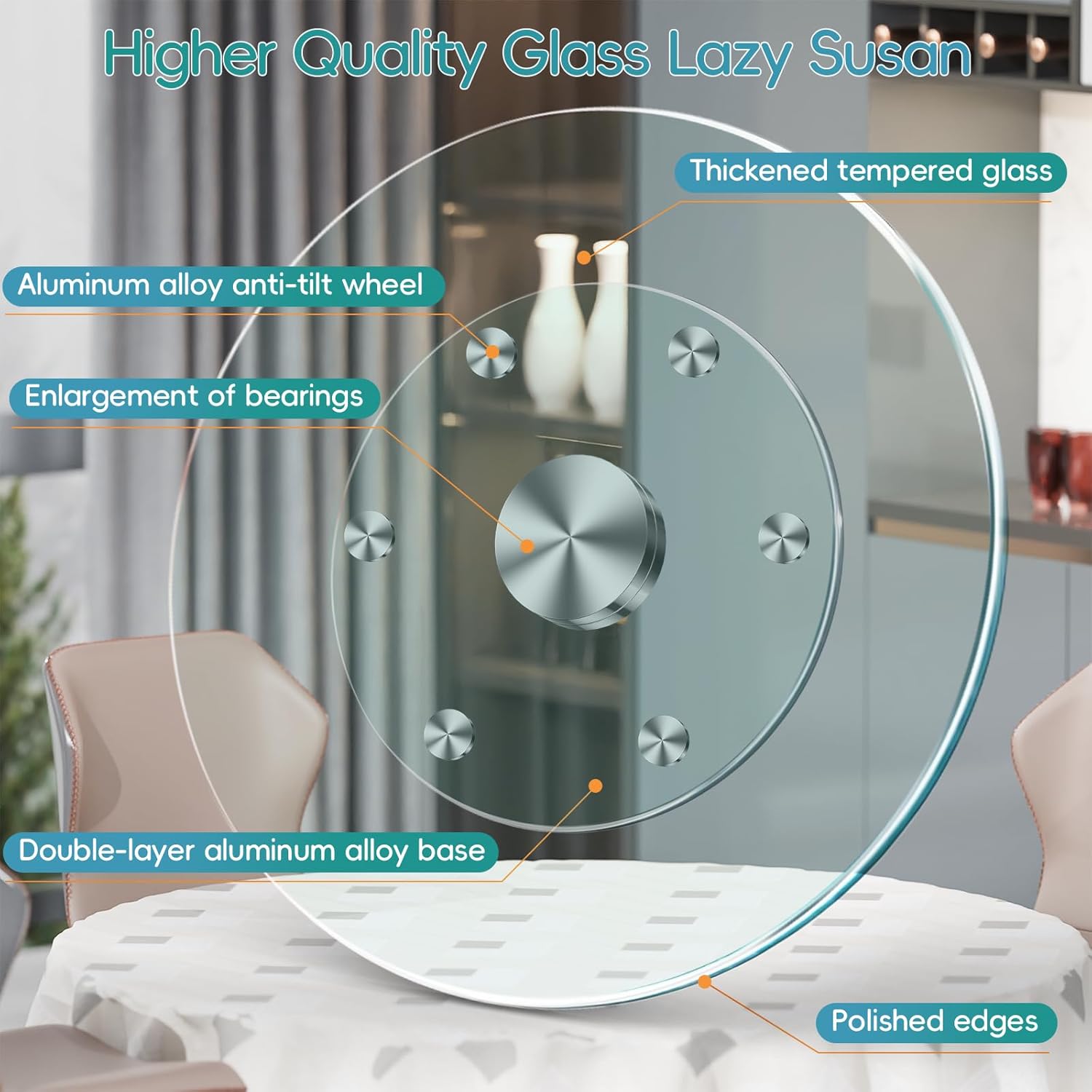 - 【GLASS LAZY SUSAN】The Lazy Susan for dining table can make the food and condiments on the table easier for everyone to reach without having to reach back and forth, providing a fun dining experience for your family. Perfect for banquets, restaurants, weddings, parties, kitchens and more.
