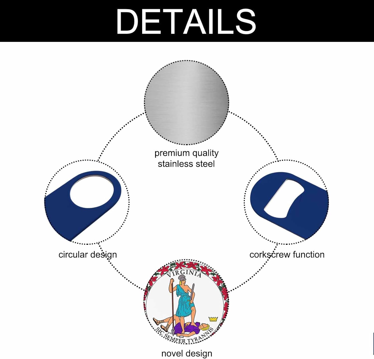 - Premium Material: Our virginia state flag bottle opener is made of stainless steel, sturdy for long-term use.