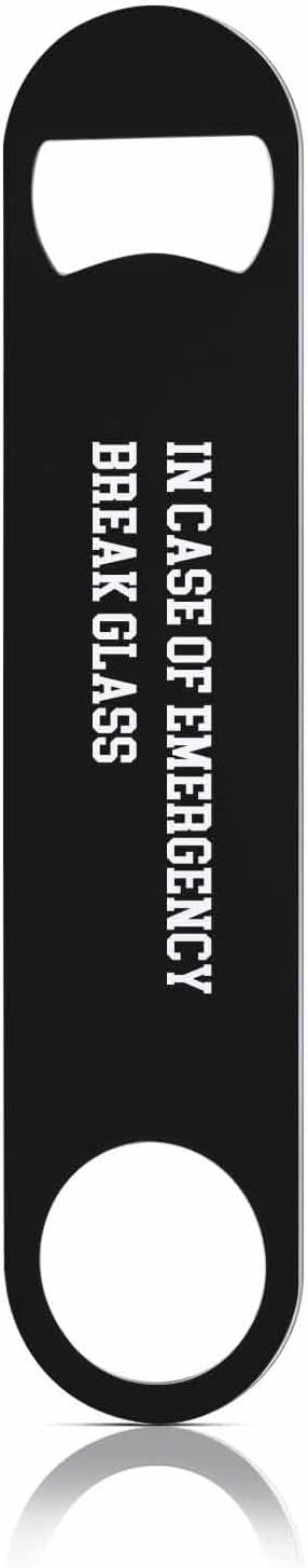Funny Saying Quotes Stainless Steel Bottle Opener In Case of Emergency Break Glass Flat Beer Bottle Opener Keychain for Home Kitchen Bar Restaurant Party Birthday Gift