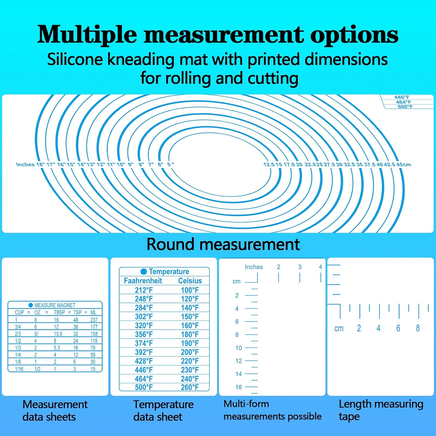 - 【Perfect for Baking/Dough Mat】This versatile baking mat is not only perfect for pastry and baking, but also serves as a table mat, pizza pad, and countertop mat.Perfect for preparing all kinds of pie crusts, pie rolling, pizza, dough, cookies, bread, macarons, pastries, and fondants. Its perfect size is measured with imperial and metric baking sheet, making it easy for everyone to bake.