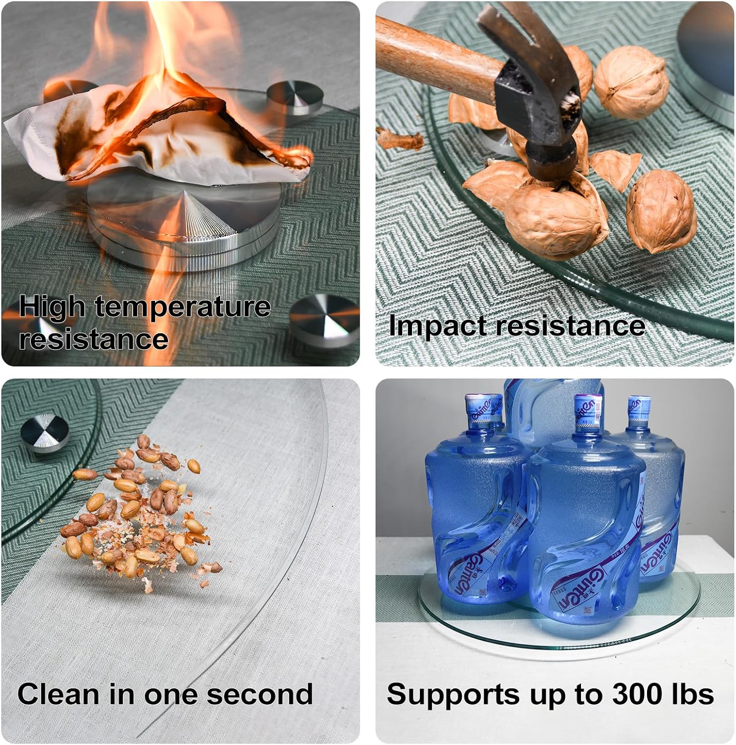 30" Heavy-Duty Lazy Susan - 1/3" Extra-Thick Tempered Glass (50% Thicker!) - Anti-Tip Silent Turntable for Dining Tables, Banquets