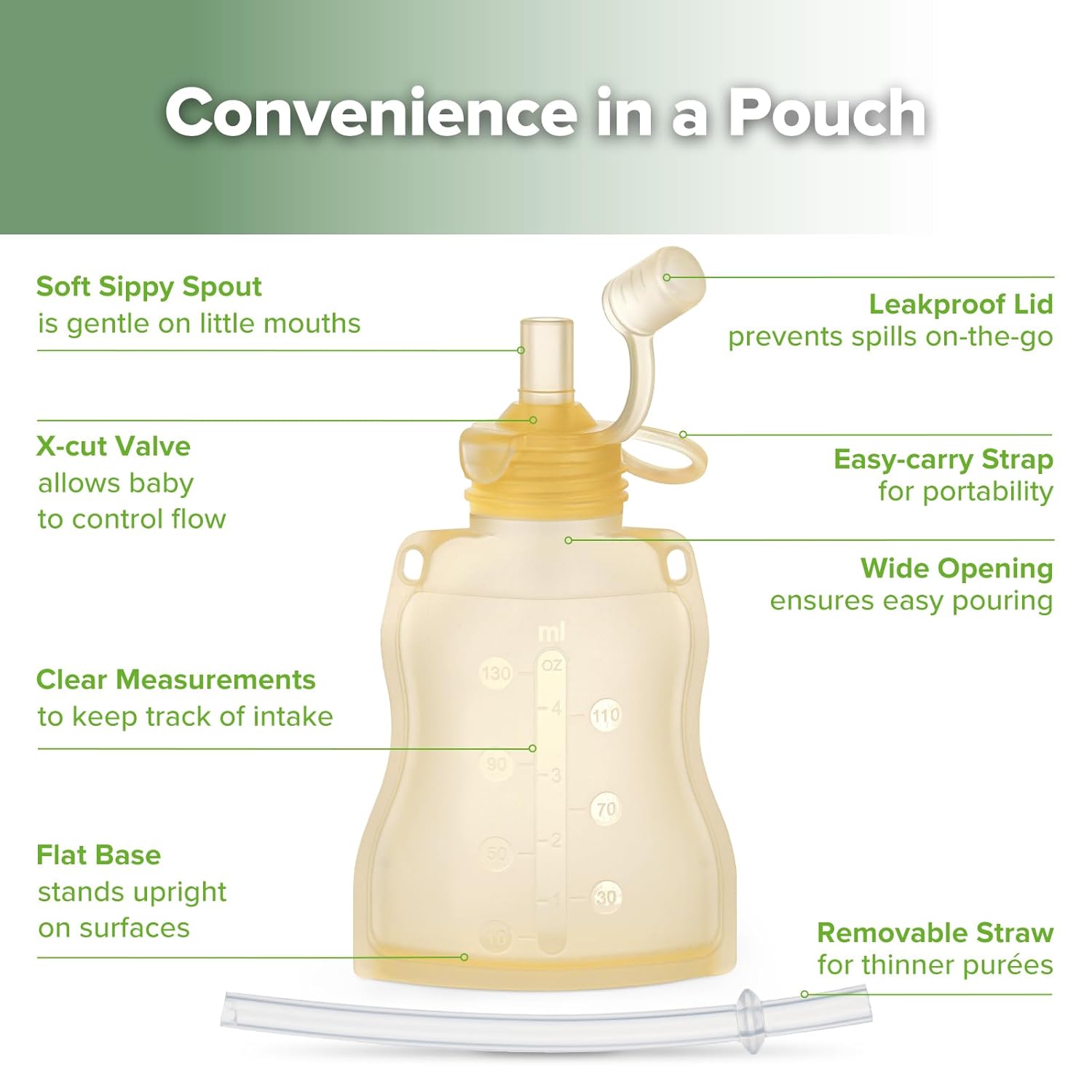 - ππ‘ππ’π¨π₯ππππ¦ π¦πππ-ππππππ‘π: The 130ml capacity is ideally sized for little tummies. The soft silicone spout features a cross-cut valve that lets your baby control the flow, matching their own abilities, while preventing mess.