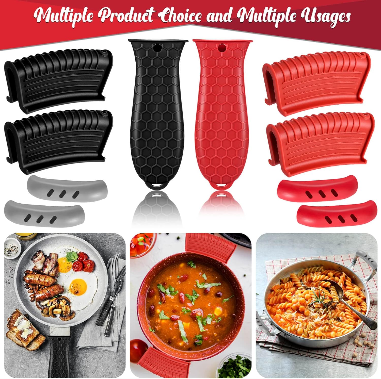 - Main function: BPA-free and odorless, scald-proof and heat insulated, durable enough for many times use. Quality material for serving a long time, just wrap easily onto hot frying pan and pot hand, the silicone hot handle holder can block heat and enhanced grip with grain on the handle, provide you more protection