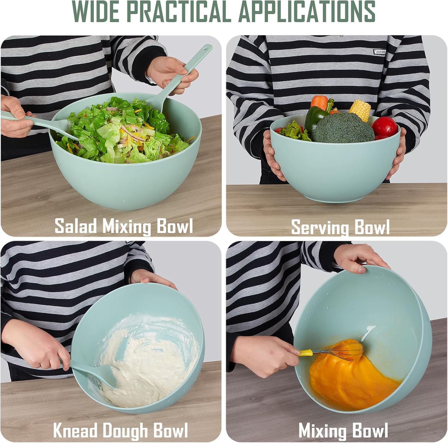 - Large Serving Bowl for Parties: This jumbo salad bowl is a stylish addition to any kitchen. It is larger than 9.8inch salad bowl set. It may serve 6-10 people. Perfect for parties or festive family feast or other big dinner. Suitable for serving salads, fruits,pasta and mixtures.