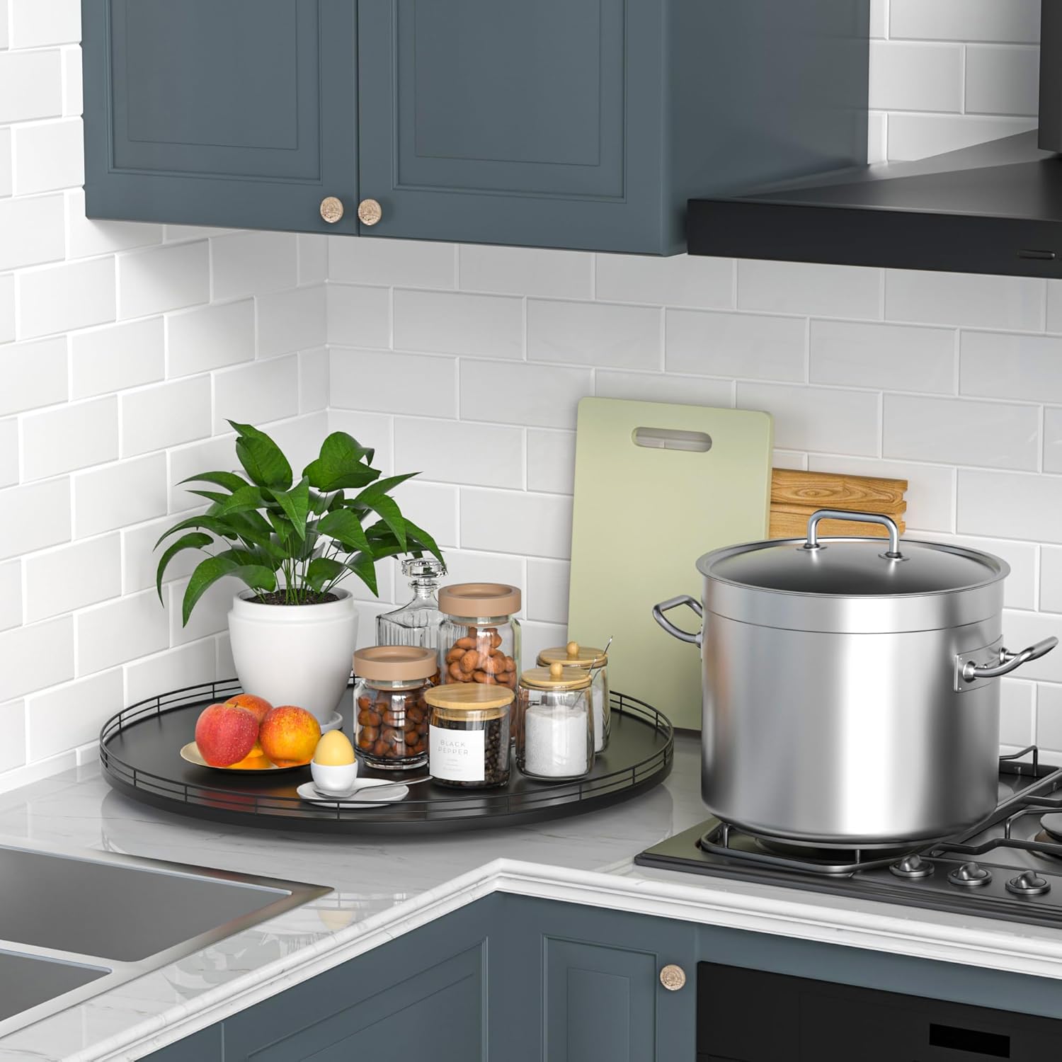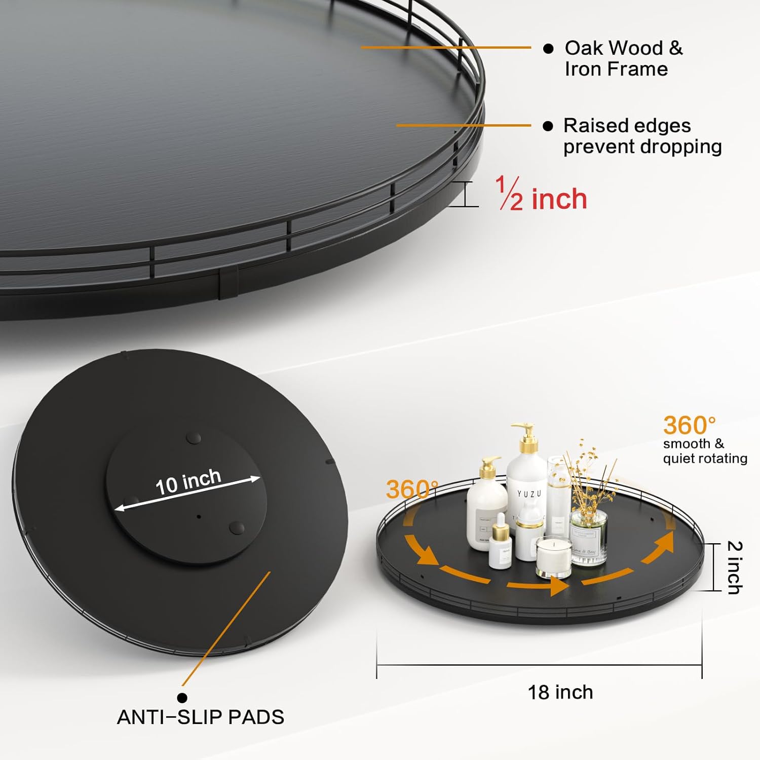 18" Oak Wooden Lazy Susan Turntable for Dining Table, Large Round Lazy Susans Organizer for Kitchen Countertop, Tabletop 360ยฐRotating Tray for Spice Organization and Storage Black Home Decor
