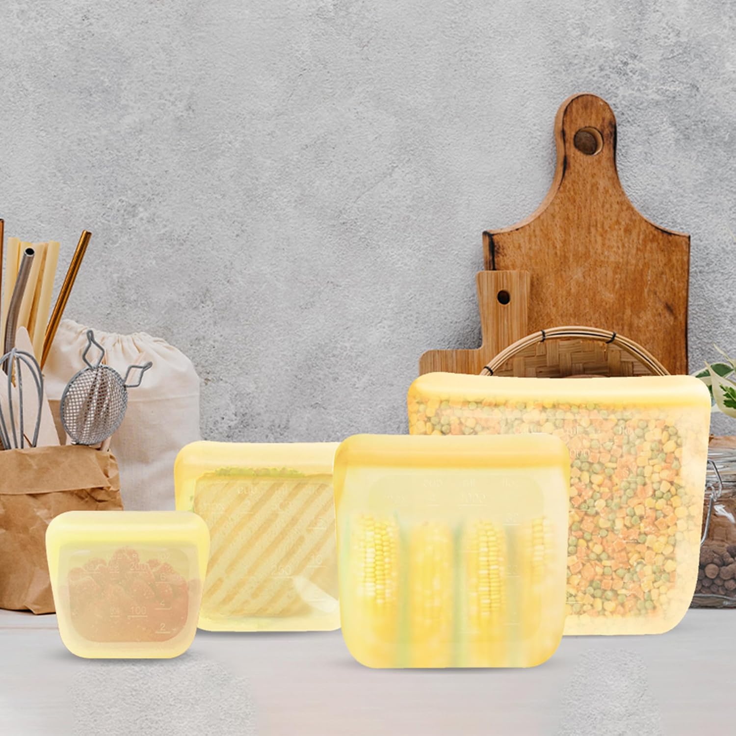 - Effortless Organization & Clear Visibility: Our transparent reusable silicone bags offer quick content recognition, saving time. Easily identify stored items without opening the bag. The sleek design enhances kitchen organization with modern flair.