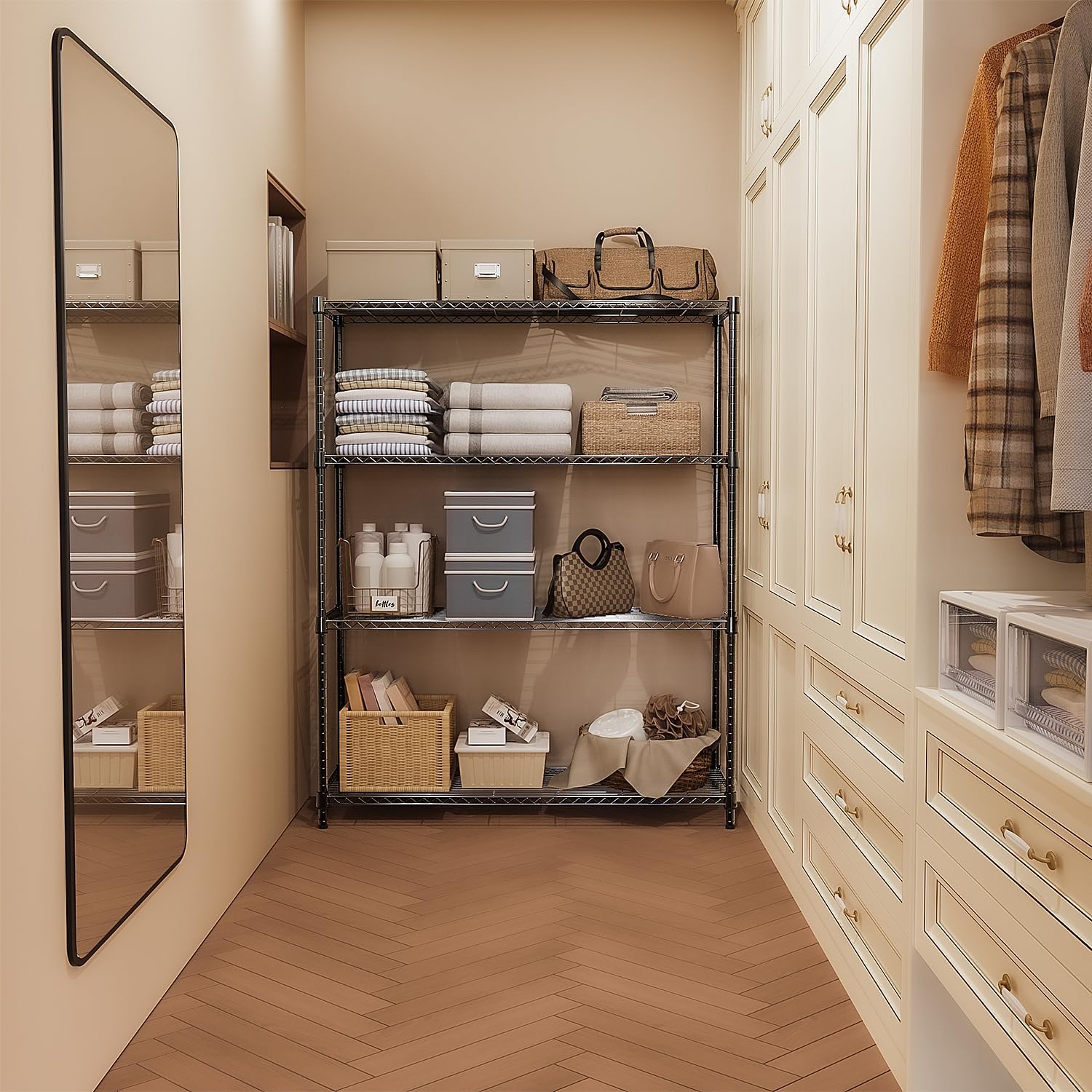 1400 lbs 4 Tier Storage Rack Metal Wire Shelving Unit, Storage Standing Household Shelf Organizer for Kitchen Pantry Closet Garage Basement Utility Room, Black 15.8" D x 45.3" W x 59.4" H