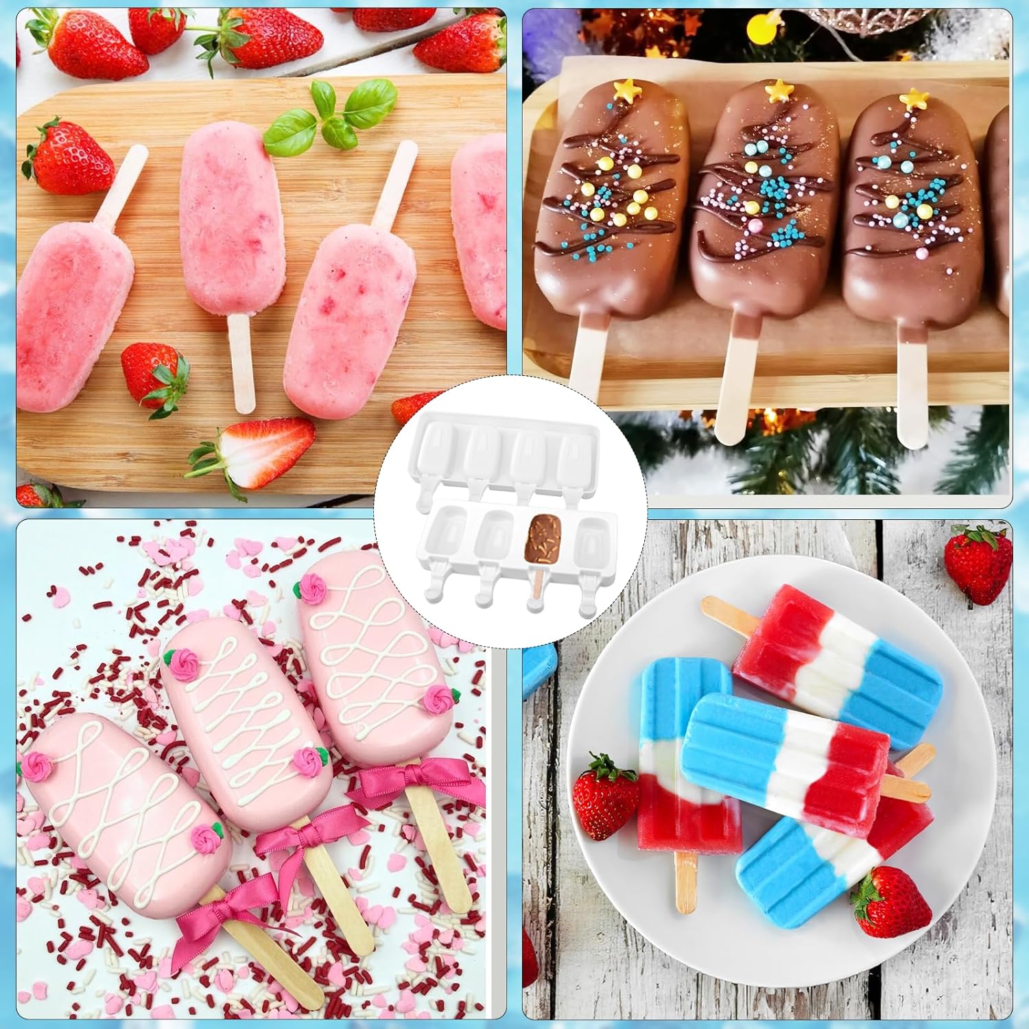 - Wide Application: these ice cream mould can be applied in freezers or ovens, suitable for both summer and winter; you can DIY juice, yogurt, or fruit into delicious frozen snacks according to your hobbies; suitable for making ice cream, dessert, jelly, cake, ice lollies, chocolate lollipops, etc.