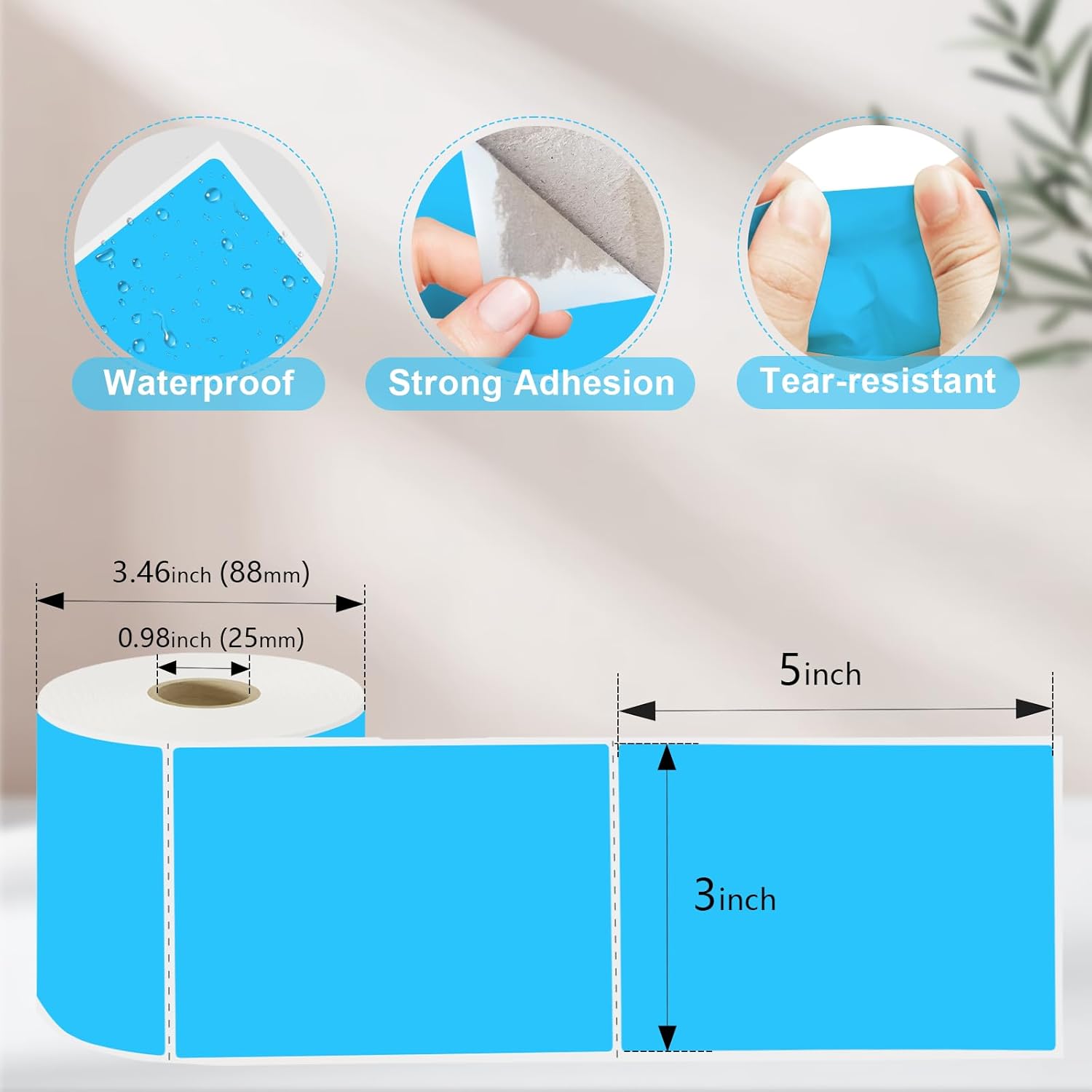 - Size and Quantity: 300pcs moving box sticker labels per roll, 3 x 5 inch sky blue colored rectangle thermal labels for bar-codes, address, small business labeling and inventory