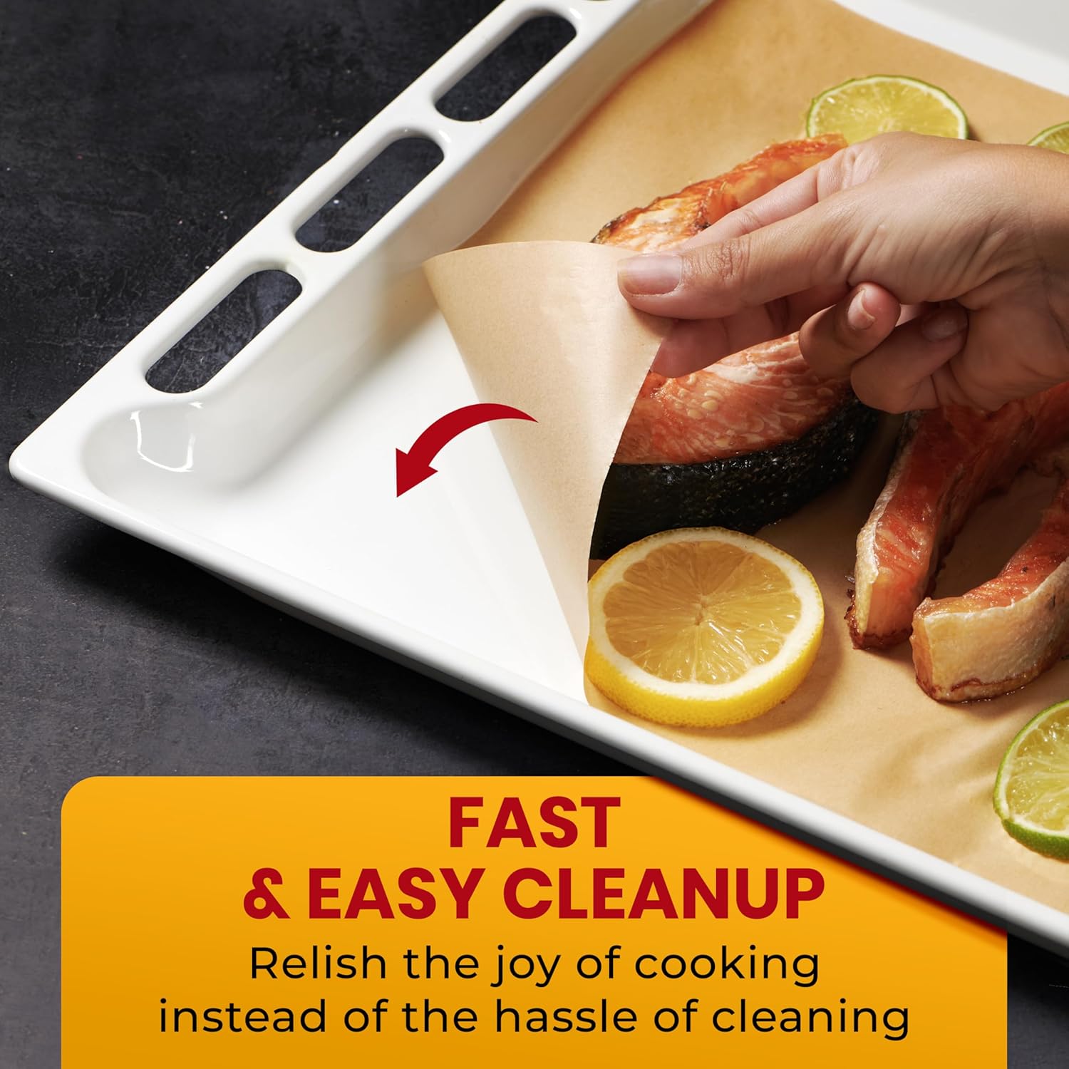 - PERFECT FOR BAKING: Our parchment paper sheet baking makes baking a breeze. Precut parchment paper sheets fit standard baking trays perfectly, are greaseproof, waterproof, and can withstand temperatures up to 450°F.