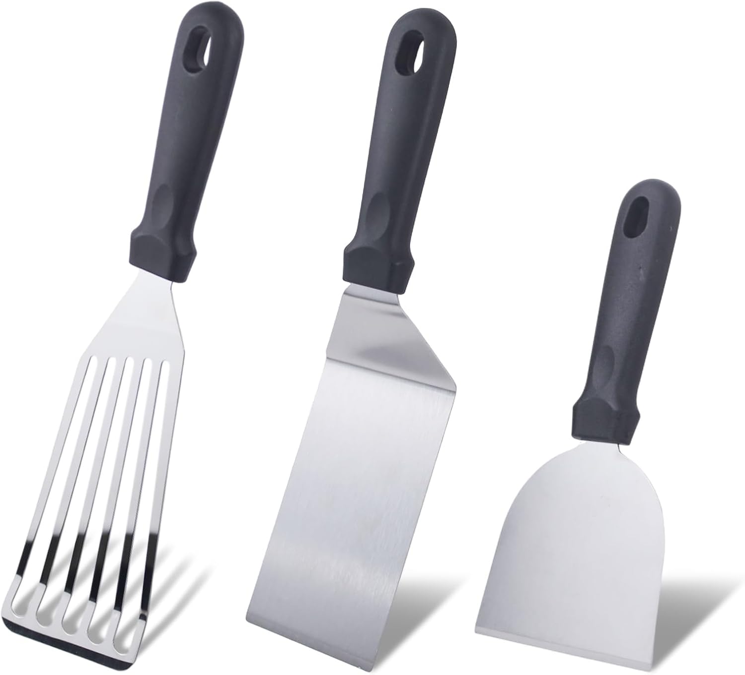 - [3-Piece Spatula Set] You will receive a 3-piece set of stainless steel spatulas that can be used to cook various foods, suitable for cast iron fryers, grills, and daily cooking.Not easy to rust.