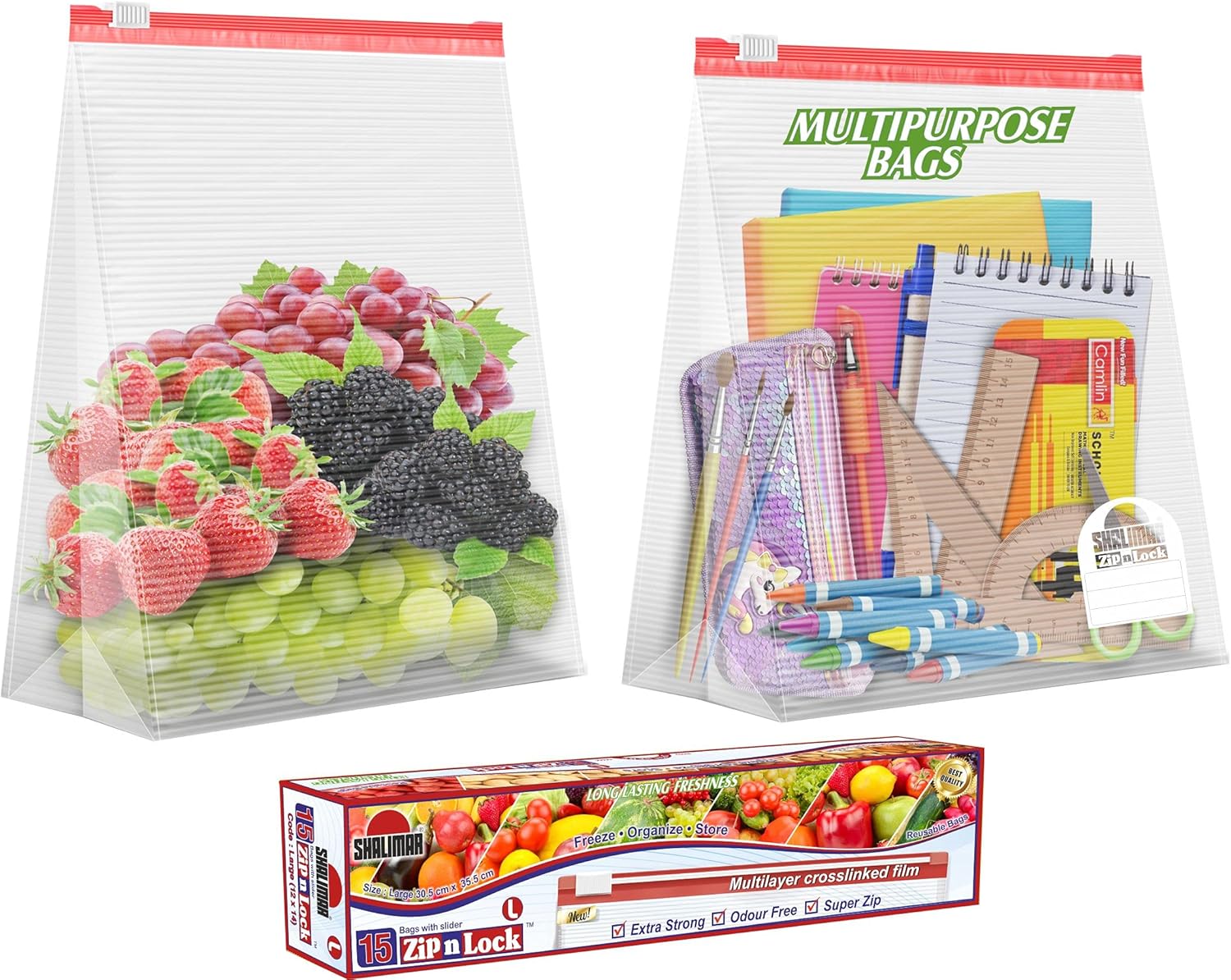 - ENDLESS POSSIBILITIES: The Shalimar Non-BPA slider bags are made to be reusable and have wide applications in your household, being suitable for storing anything from snacks, fruit, dried nuts, food leftovers, dog treats, candy, to cosmetics, school supplies, and more!