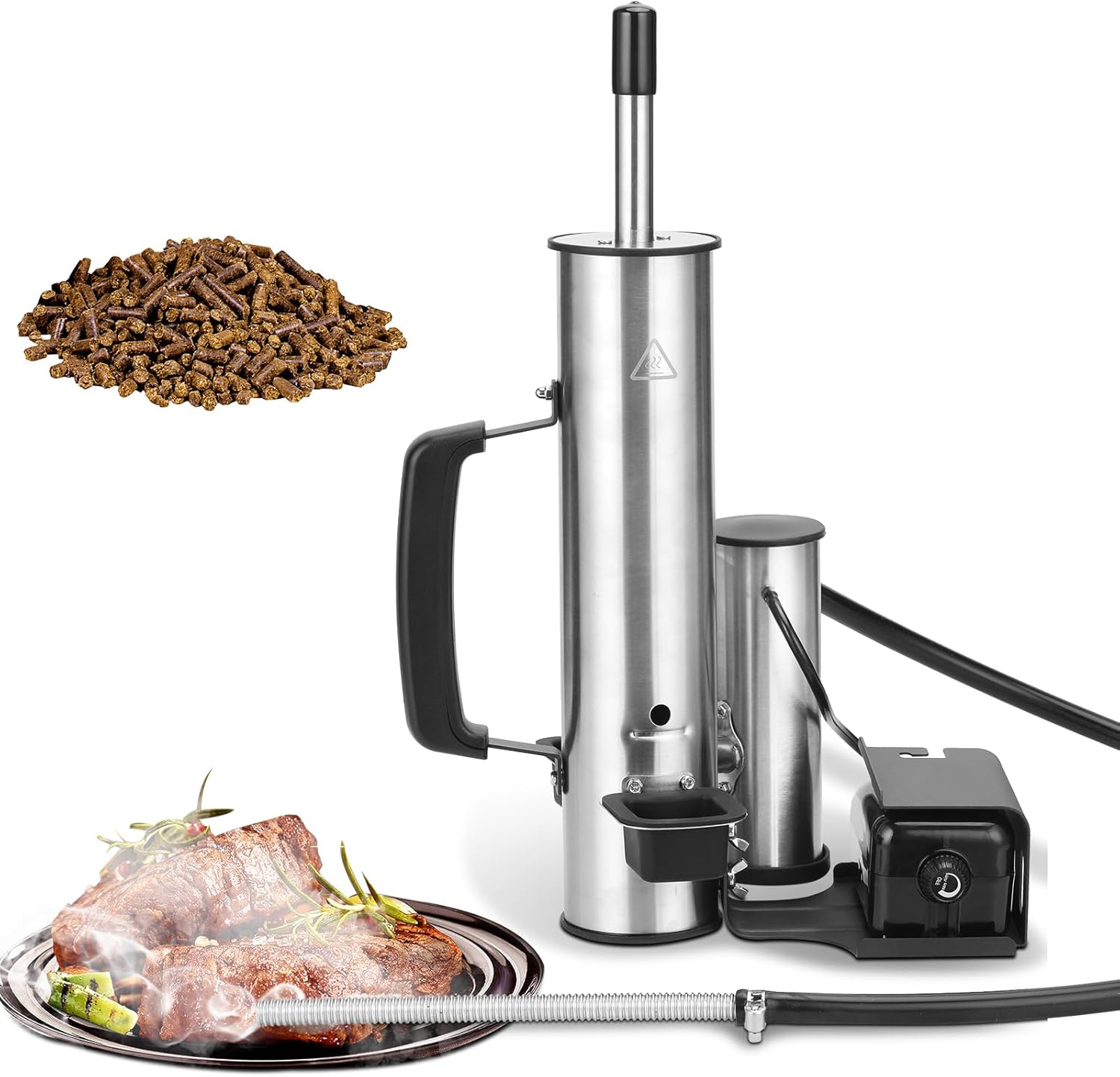 - Nice Portable Mini Smoke Generator - This stainless steel mini electric smoke generator, it's practical and doesn't take up much space, equivalent to having a small pellet smoker, you donβt need to buy a big bulky smoker. Add your favorite blend of wood chunks or chips to customize smoke profile, such as cherry, hickory, mesquite, apple, pecan to add different tastes.