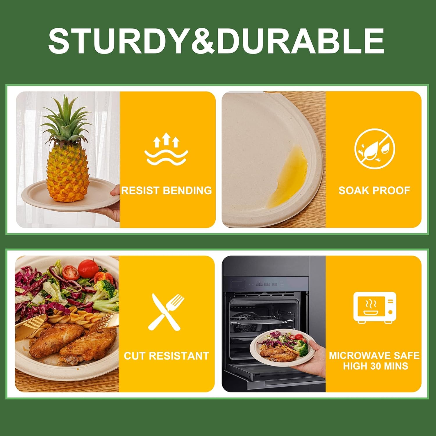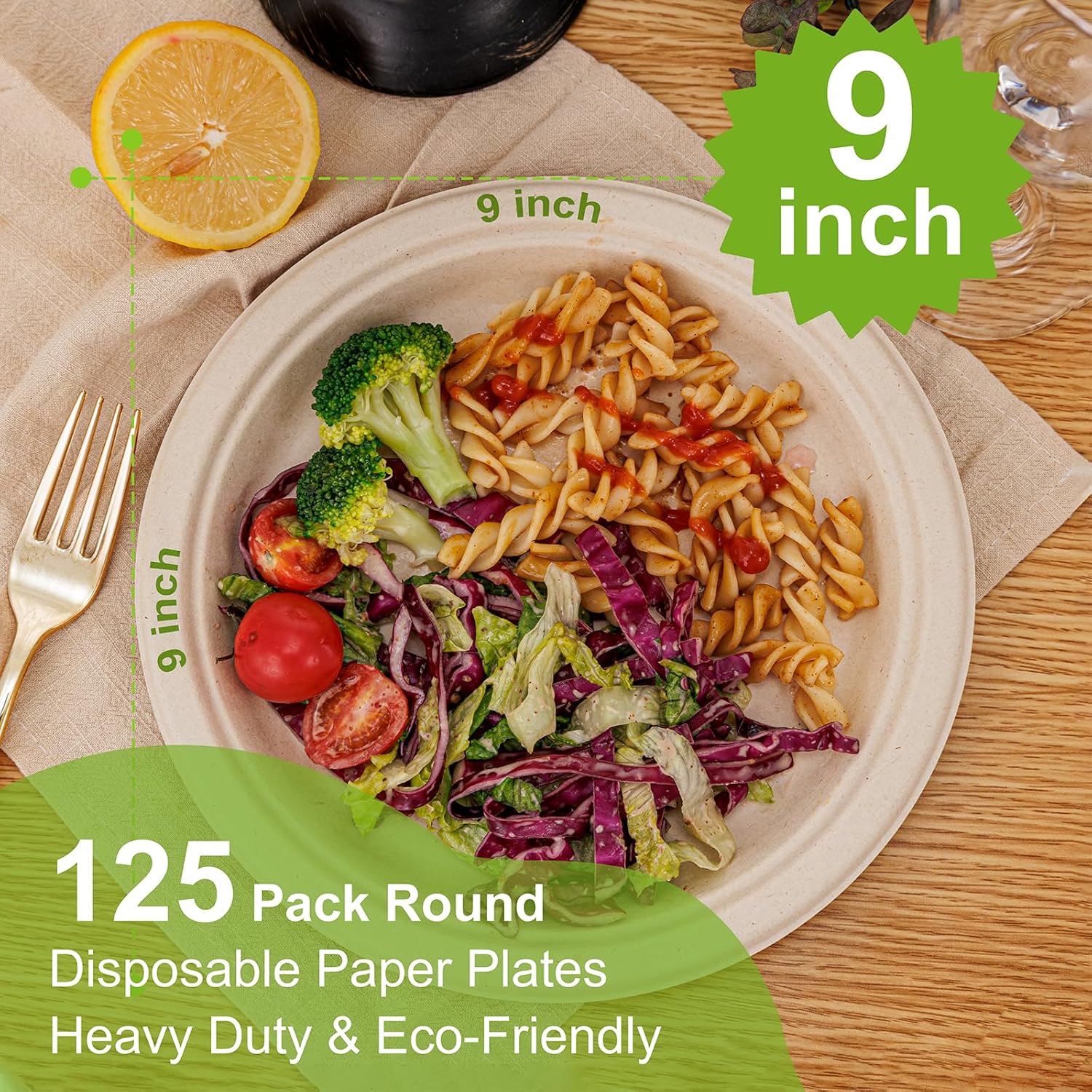 - 【Eco-Friendly & Compostable】WELLIFE 9 inch paper plates are made from sustainable sugarcane fibers, ensuring that they are naturally decomposing and compostable plates. This reduces waste and helps protect the environment. In line with the current green development concept.